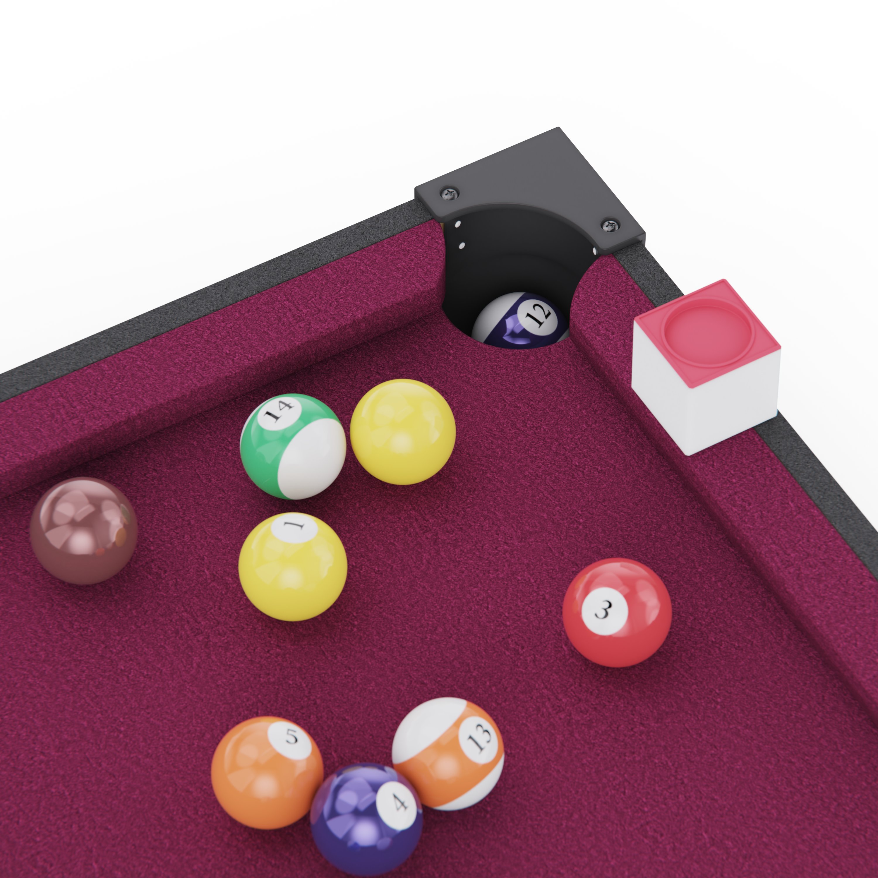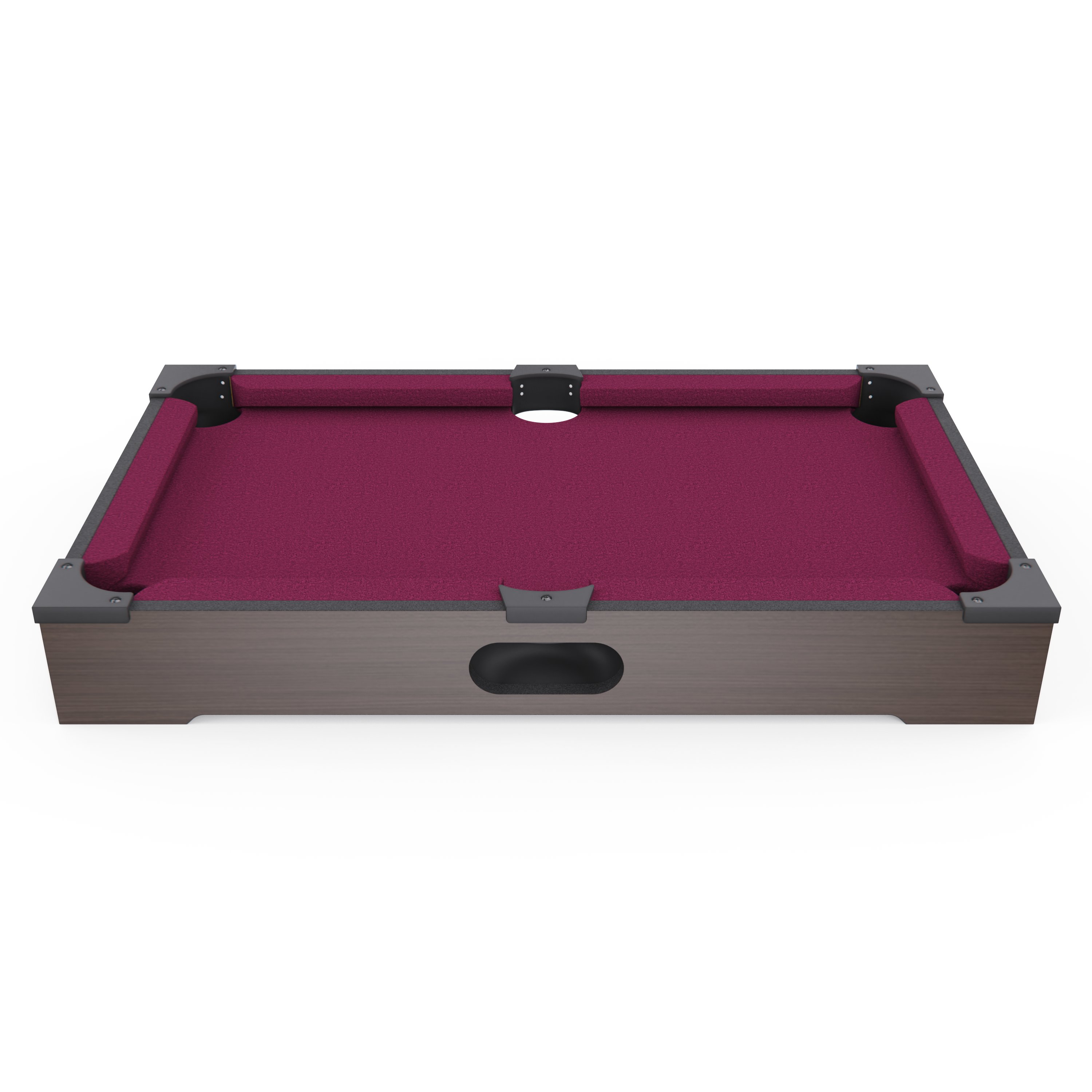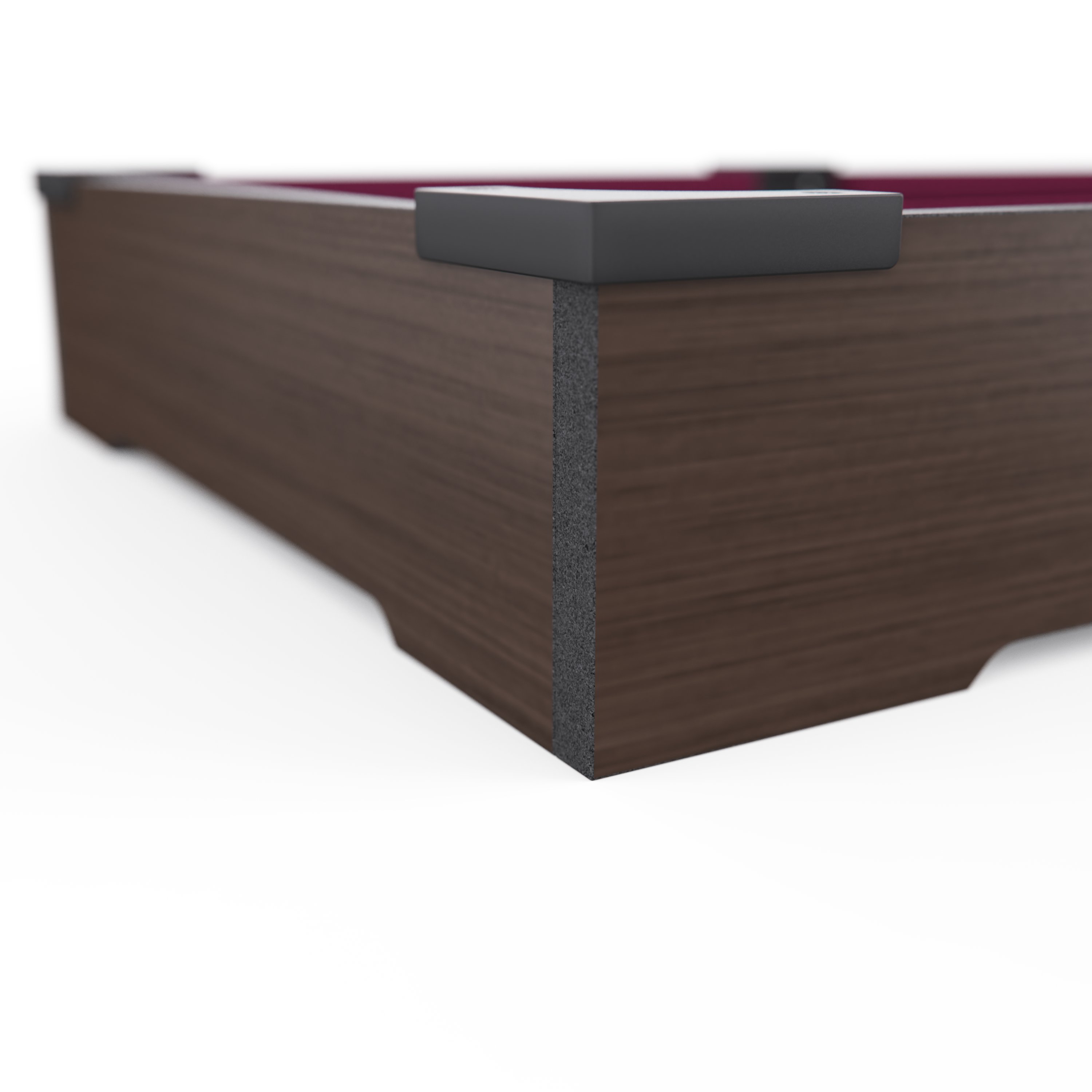 Игровая поверхность выполнена из МДФ с покрытием ПВХ и бархатным сукном, что обеспечивает ровный ход шаров и приятные ощущения во время игры. Толщина игрового поля — 4,75 мм, высота бортиков — 18 мм, а их толщина — 9 мм, что позволяет добиться стабильного и предсказуемого отскока шаров.