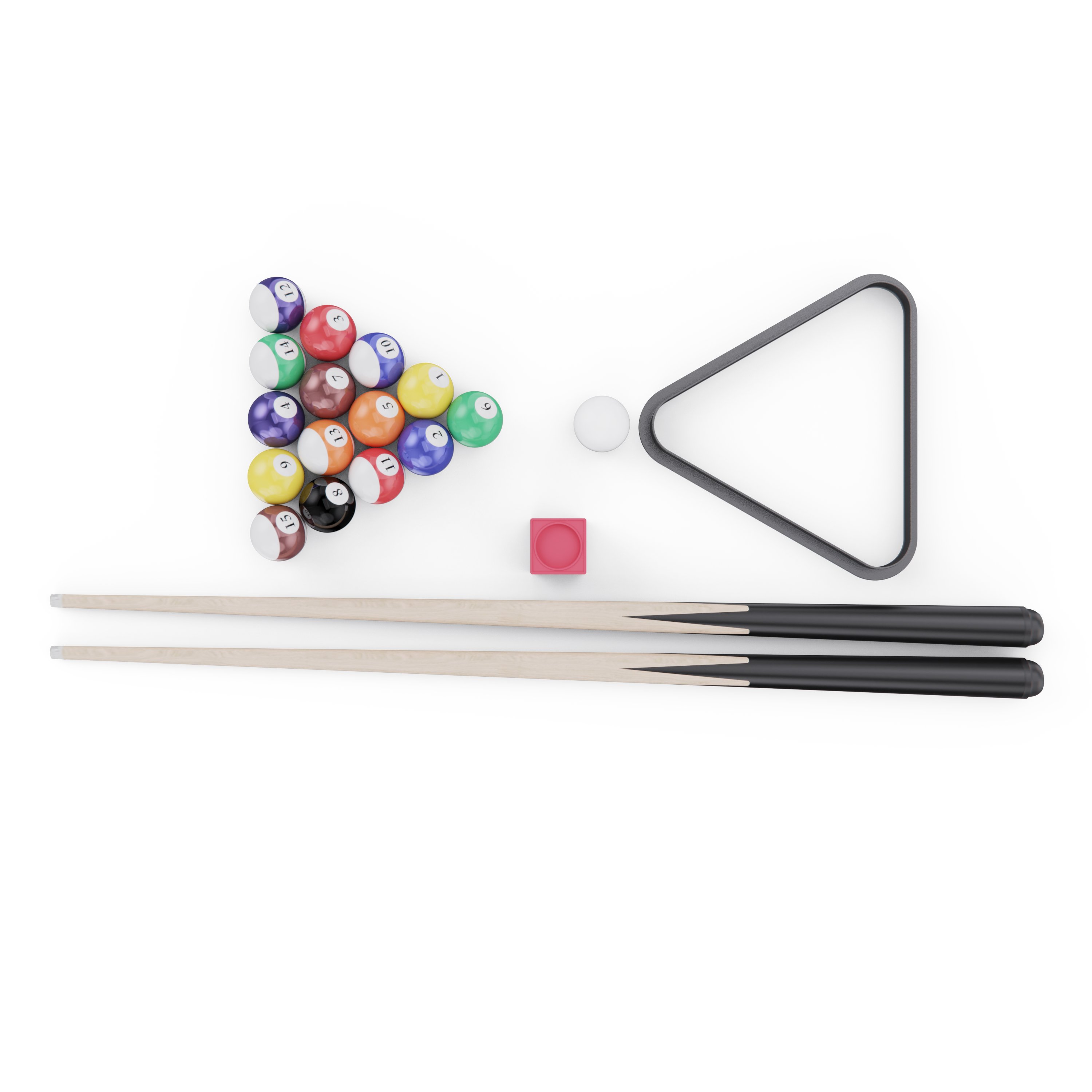 В комплект входят все необходимые аксессуары для игры: шарики, мел, кий, треугольник для выравнивания шаров и щётка для ухода за игровым полем. Длина кия 45,7 см — он удобно лежит в руке и отлично подходит для детей. Компактные размеры и небольшой вес делают стол мобильным и удобным для хранения.