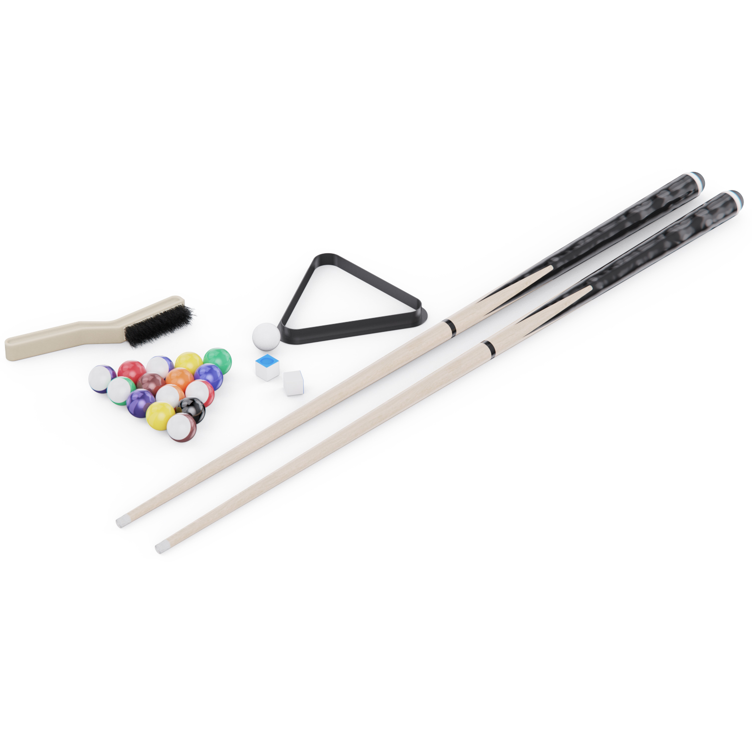 Всё, что нужно для начала — уже включено: комплект бильярдных шаров диаметром 57 мм, два кия длиной 144,8 см, треугольник для выравнивания, щётка для ухода за покрытием и два мелка. Это делает стол отличным выбором как для новичков, так и для опытных игроков, которые ищут качественный домашний бильярдный стол.