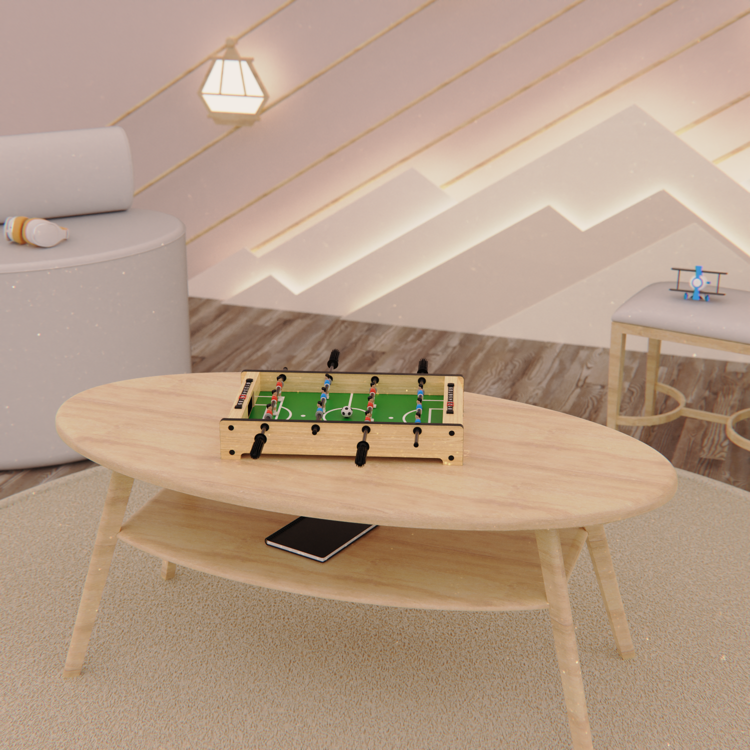 Размер стола 50 х 30 х 8,7 см. Толщина материала МДФ со стороны игроков 12 мм, с боковых сторон – 5 мм. Толщина игрового поля составляет 3 мм. В комплекте 2 футбольных мяча. Стержни с игроками уже в сборе.