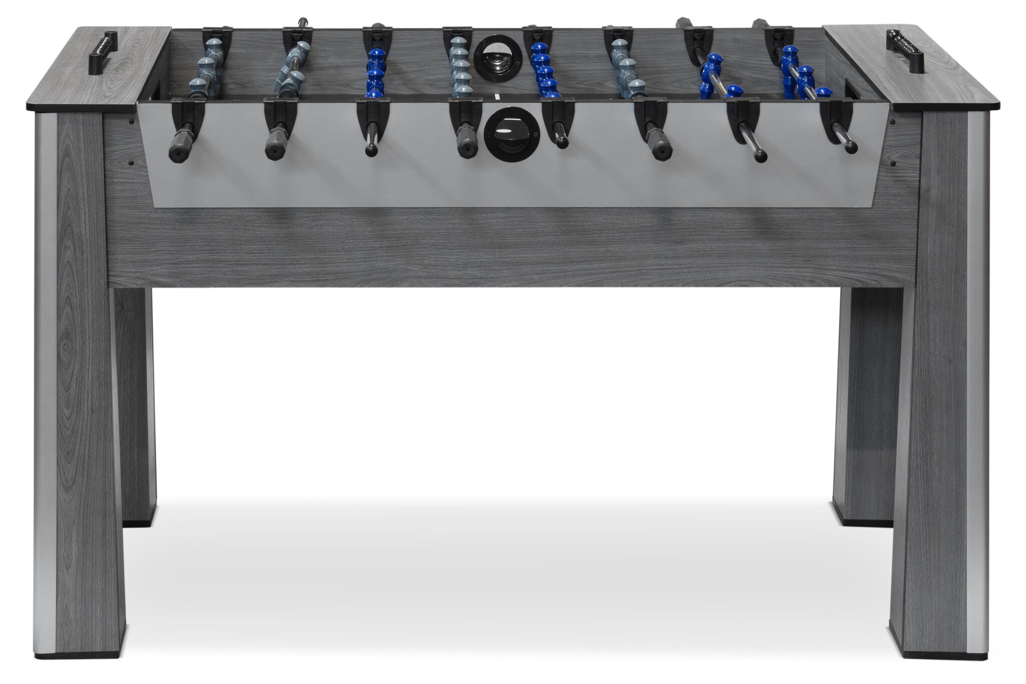 На обоих концах стола расположены механические счётчики голов, а также предусмотрены мячеприёмники и лотки для ввода мячей на игровое поле.