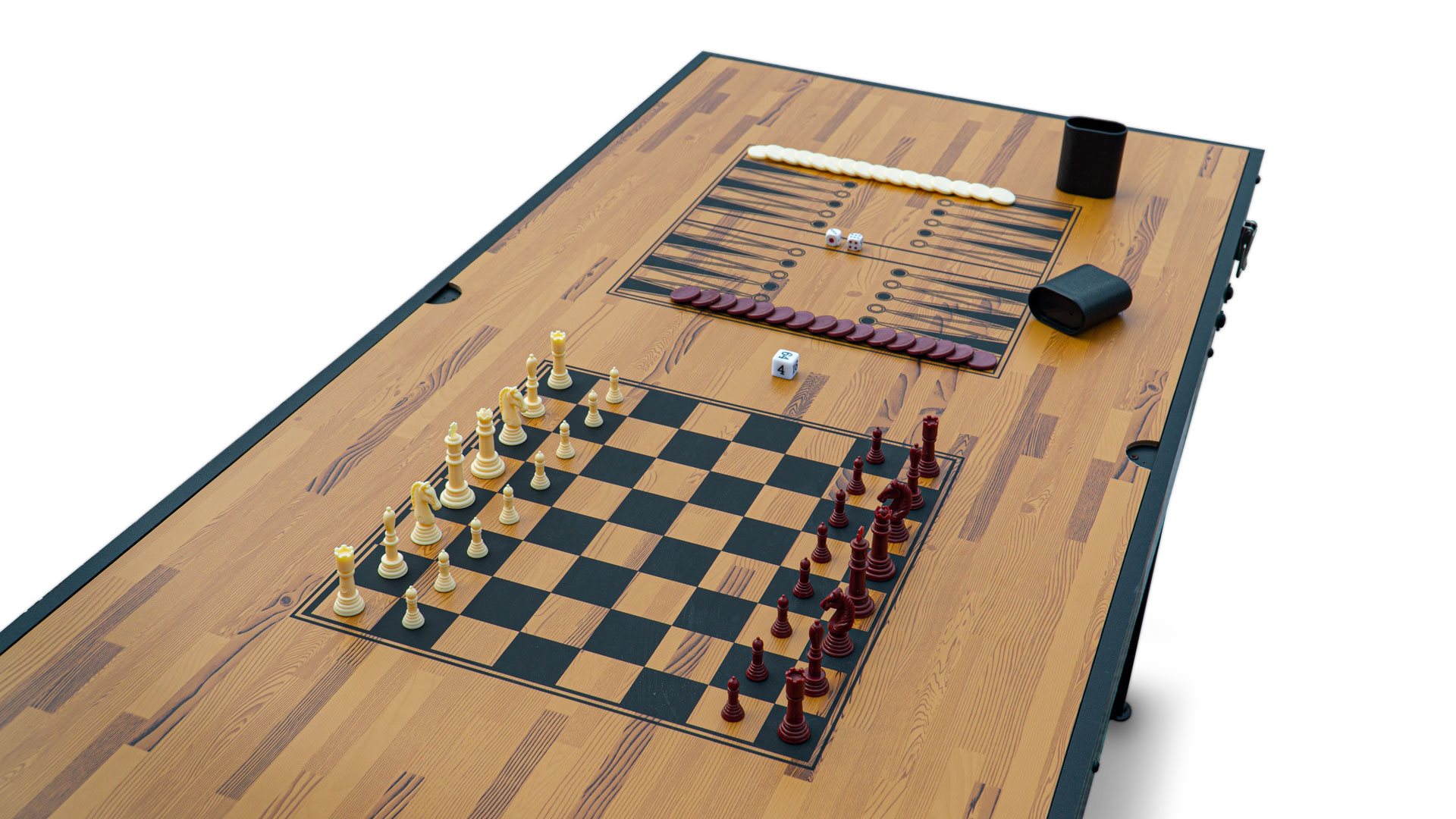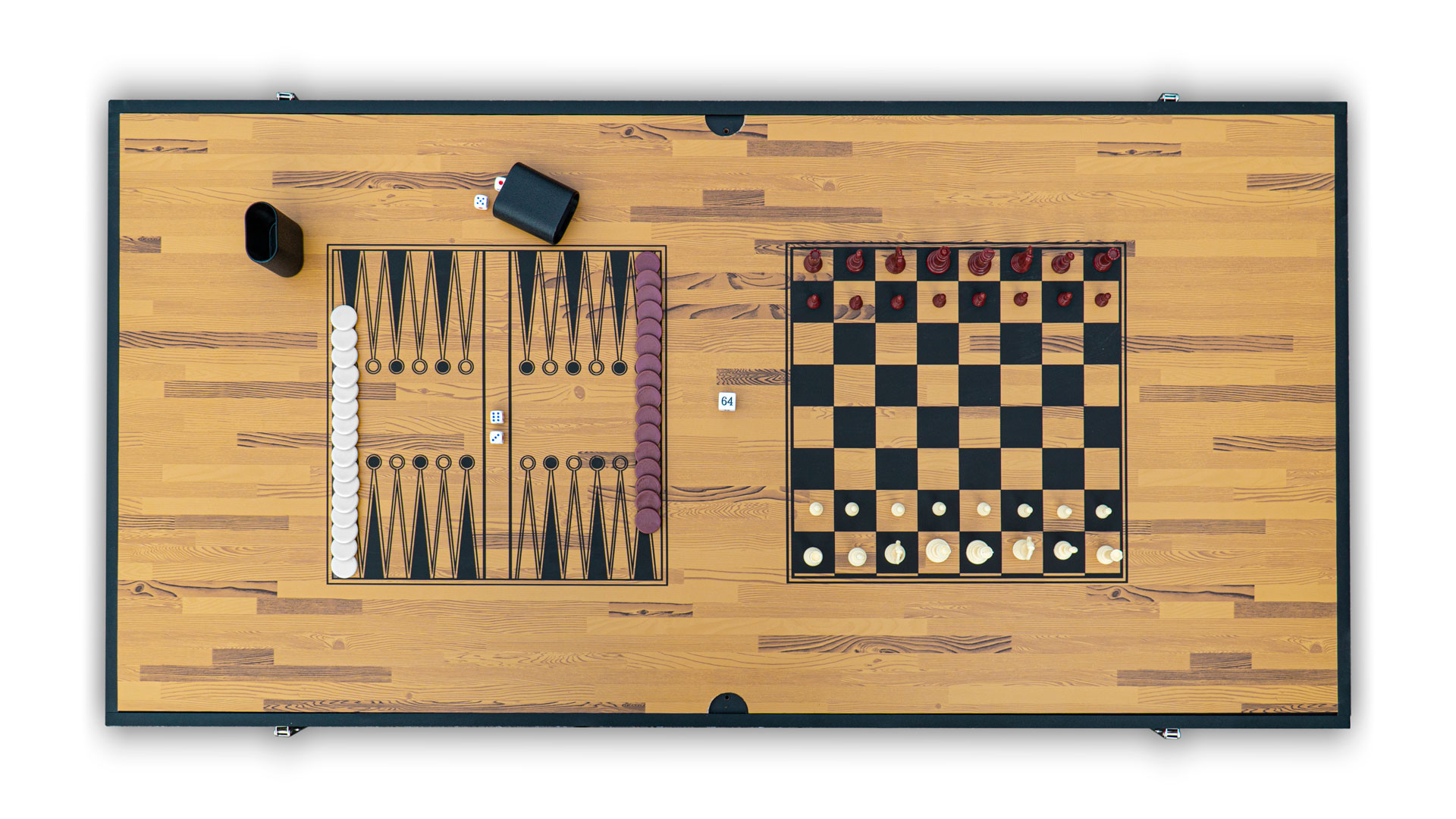 Любимые настольные игры всегда под рукой — просто смените столешницу, зафиксировав нужное игровое поле с помощью специальных защёлок. Это занимает всего несколько секунд.
