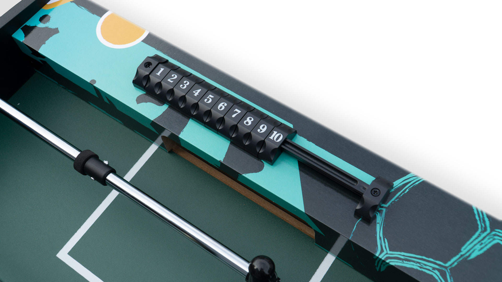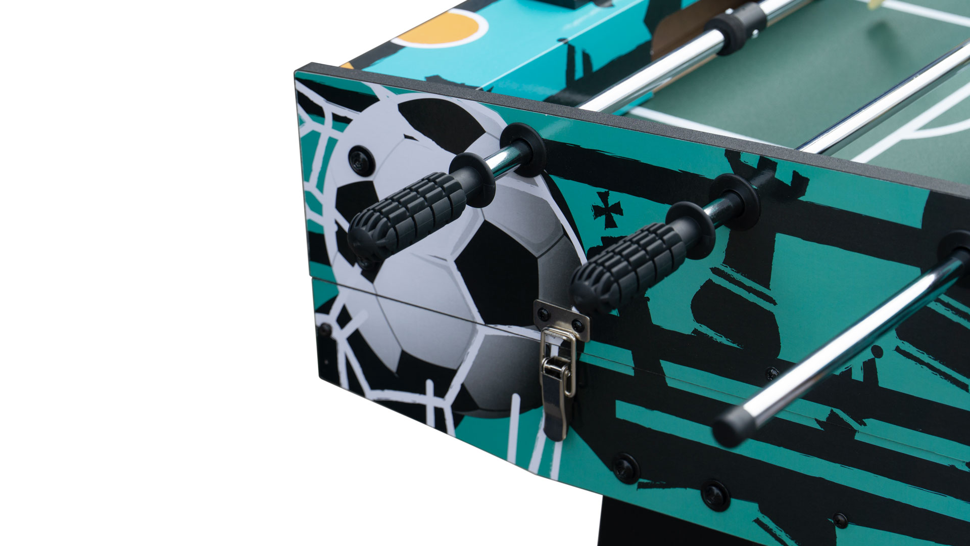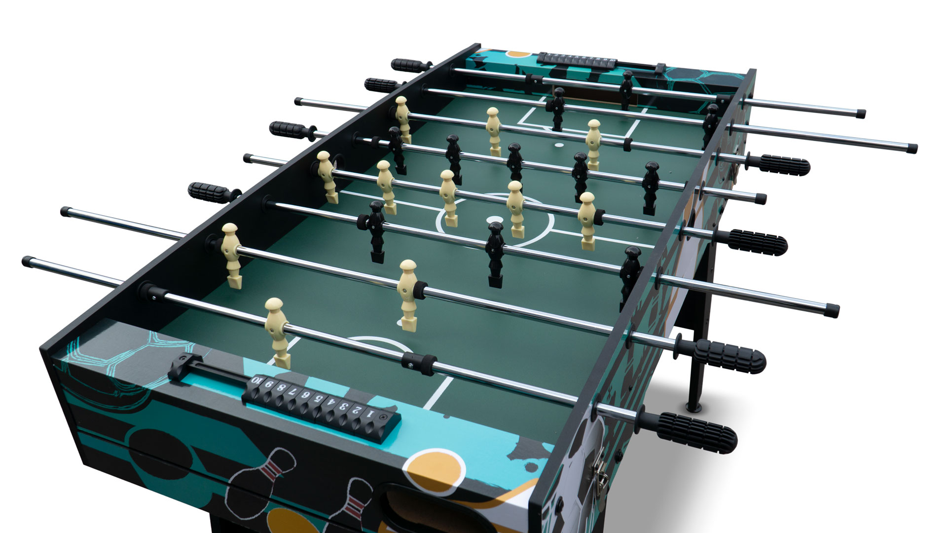 Многофункциональный игровой стол «Heat» выполнен из МДФ с ПВХ-ламинацией, что обеспечивает надёжность конструкции и отличные игровые характеристики. Любителей настольного футбола порадуют эргономичные ручки и сквозные штанги из хромированной стали — они обеспечивают плавный и скоростной ход, устойчивы к коррозии и механическим нагрузкам. Фигурки игроков из прочного пластика крепко зафиксированы и не расшатываются даже при интенсивной игре.