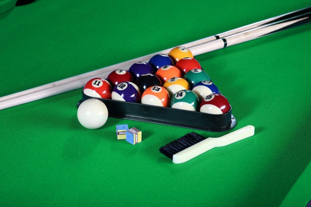 пул — 176 х 85 х 1,5 см; аэрохоккей — 184 х 94 х 0,3 см; теннис — 234 х 152 х 1,5 см; рулетка,покер,обеденный стол — 219 х 132 см