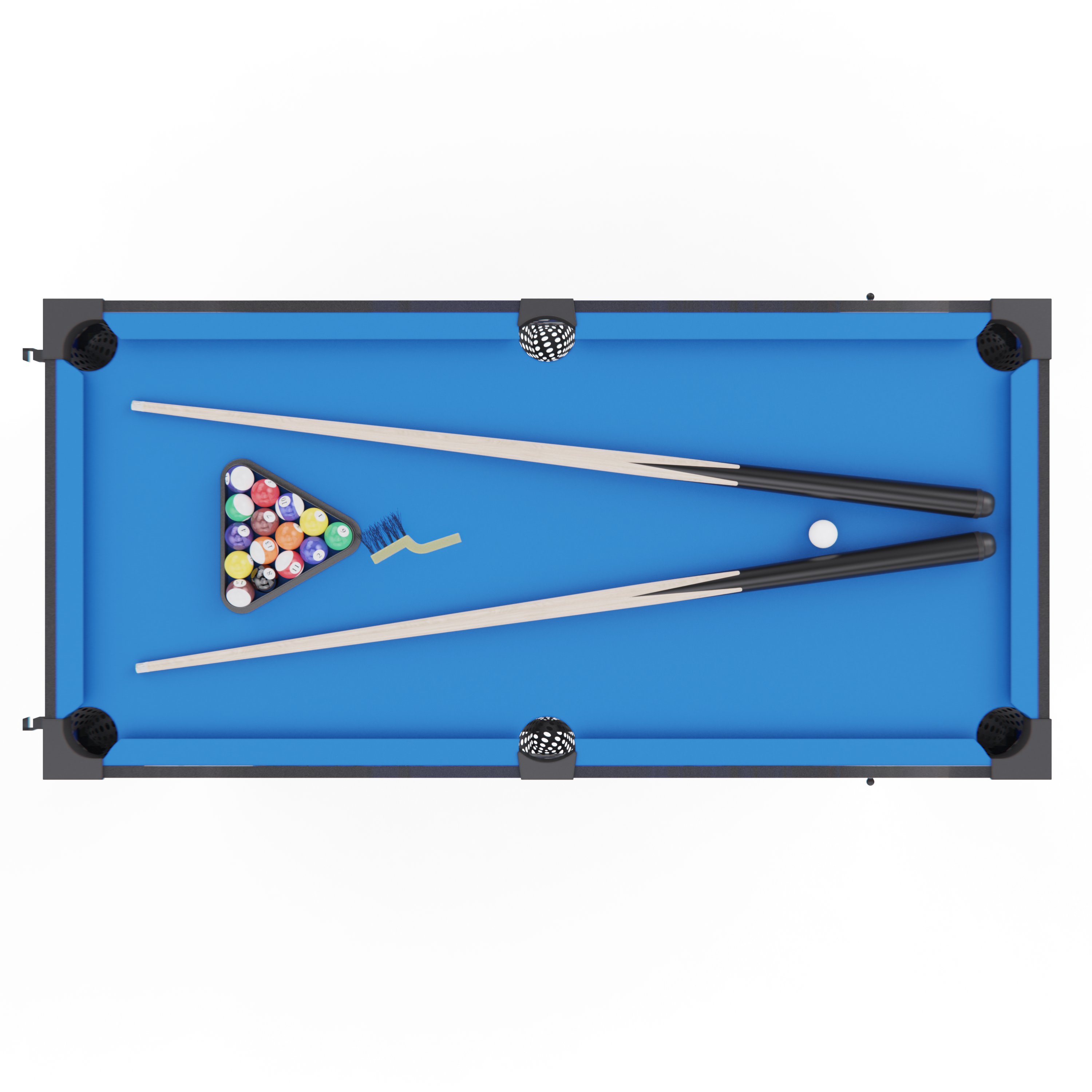 1) Бильярд (2 кия, 2 мела, щетка, комплект шаров, треугольник для выравнивания)