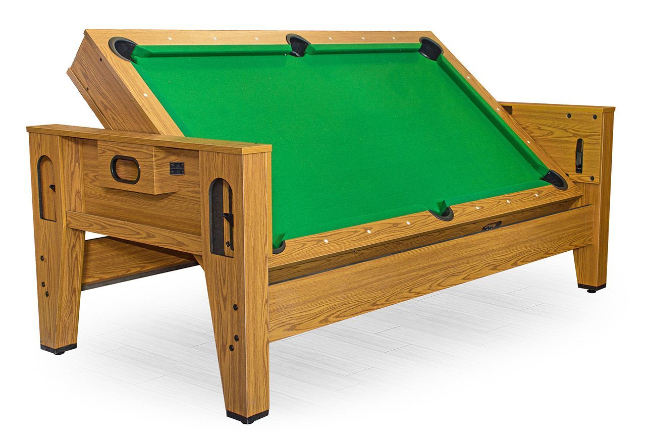 В зависимости от настроения Вы сможете провести на нем тренировку по пулу или сразиться в аэрохоккей с лучшим другом - достаточно просто повернуть игровую поверхность. Причем сделать это очень легко - просто поверните стол и закрепите нужную вам поверхность.