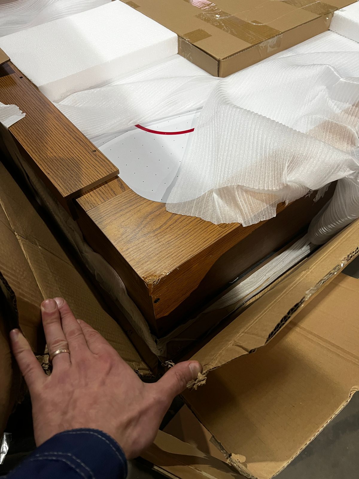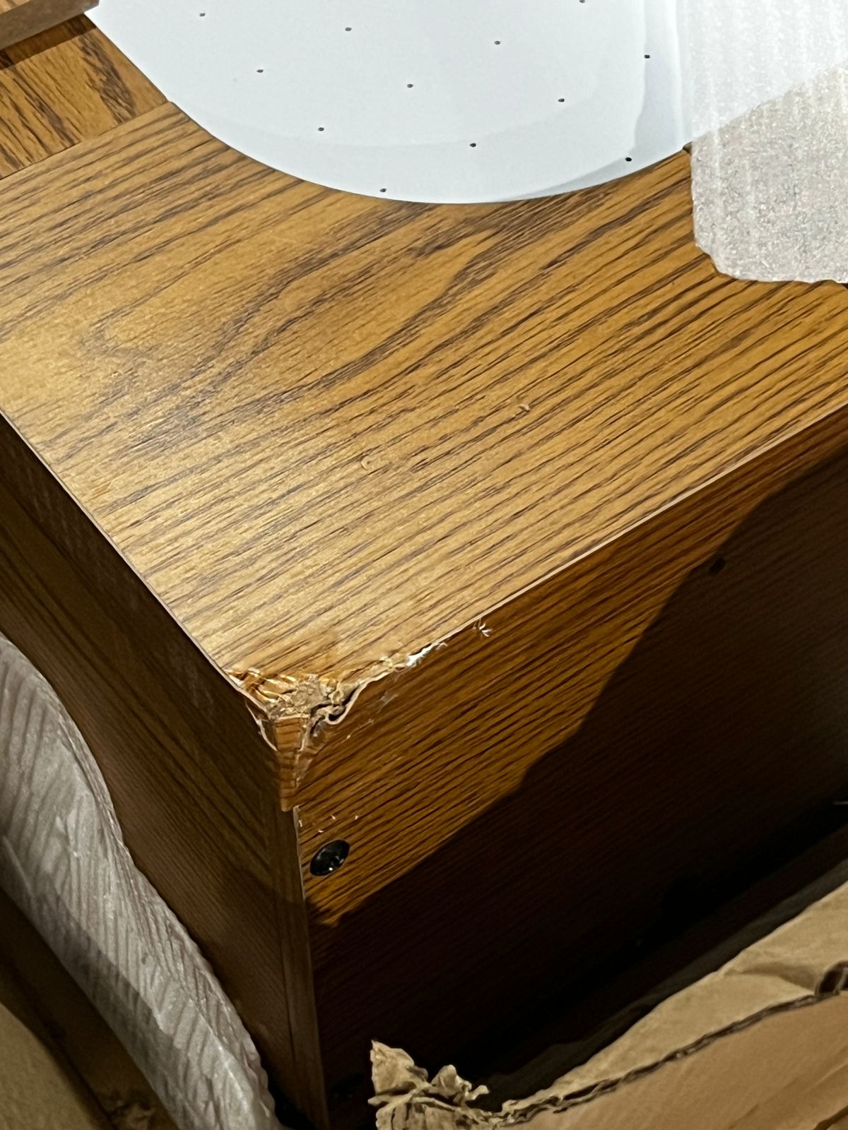 Причина уценки: повреждение отделки борта одного из углов стола.
