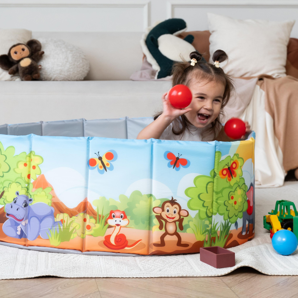 Складной сухой бассейн ROMANA серии «Мир приключений» - не только развивающая безопасная игровая зона, но и увлекательная игрушка для детей с раннего возраста.
