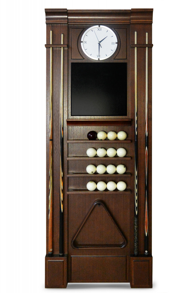 Киевница напольная выполнена в классическом стиле, уникальное сочетание респектабельности и внешней простоты. Предназначена для 4 киев, позволяет разместить треугольник, мелки, перчатки, а также бильярдные шары. Декоративным и функциональным элементом киевницы являются часы диаметром 250 мм. Разнообразие цветов палитры позволит подобрать идеальную для интерьера выкраску.