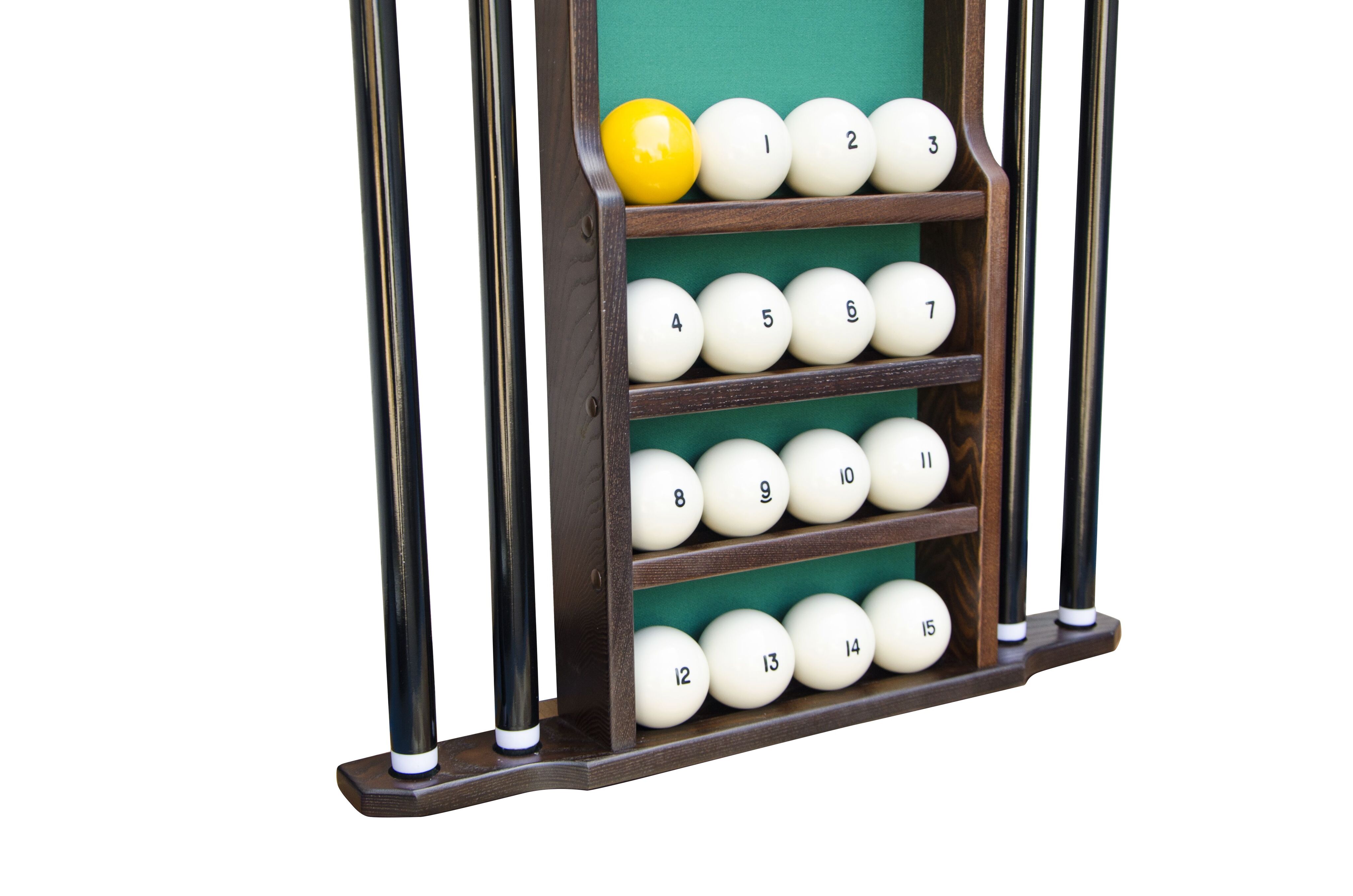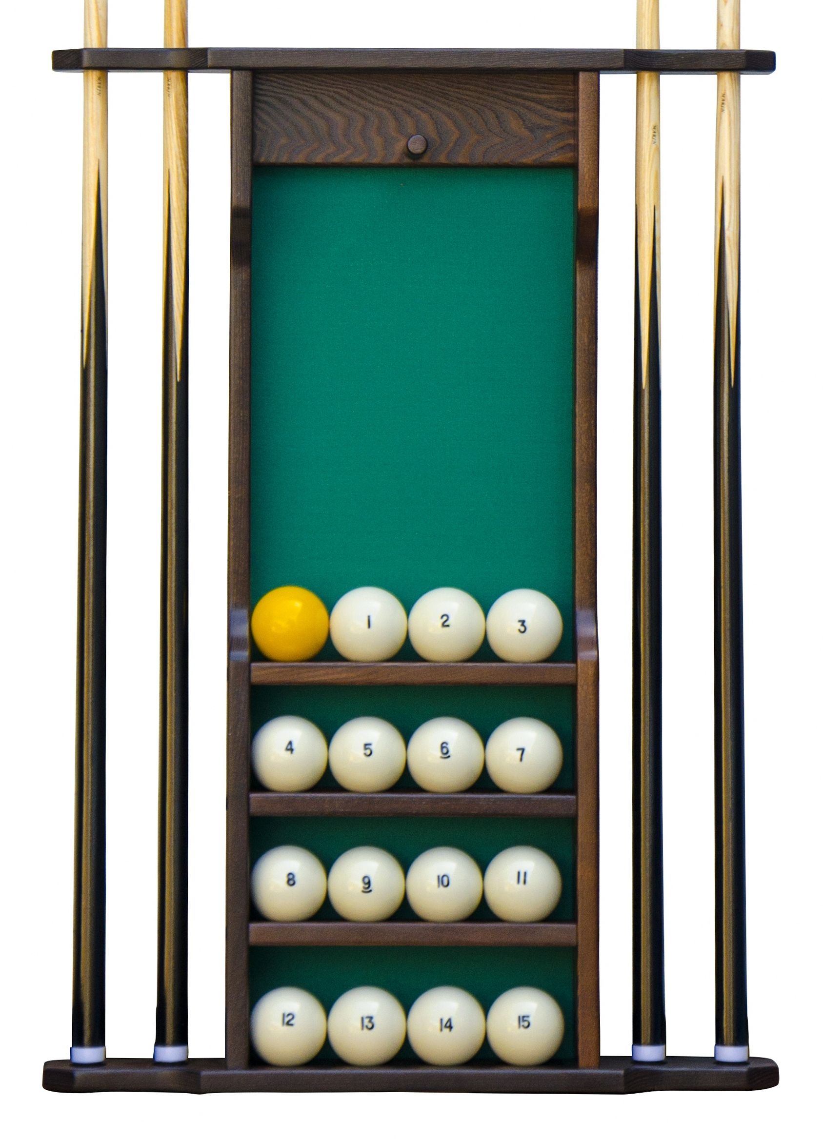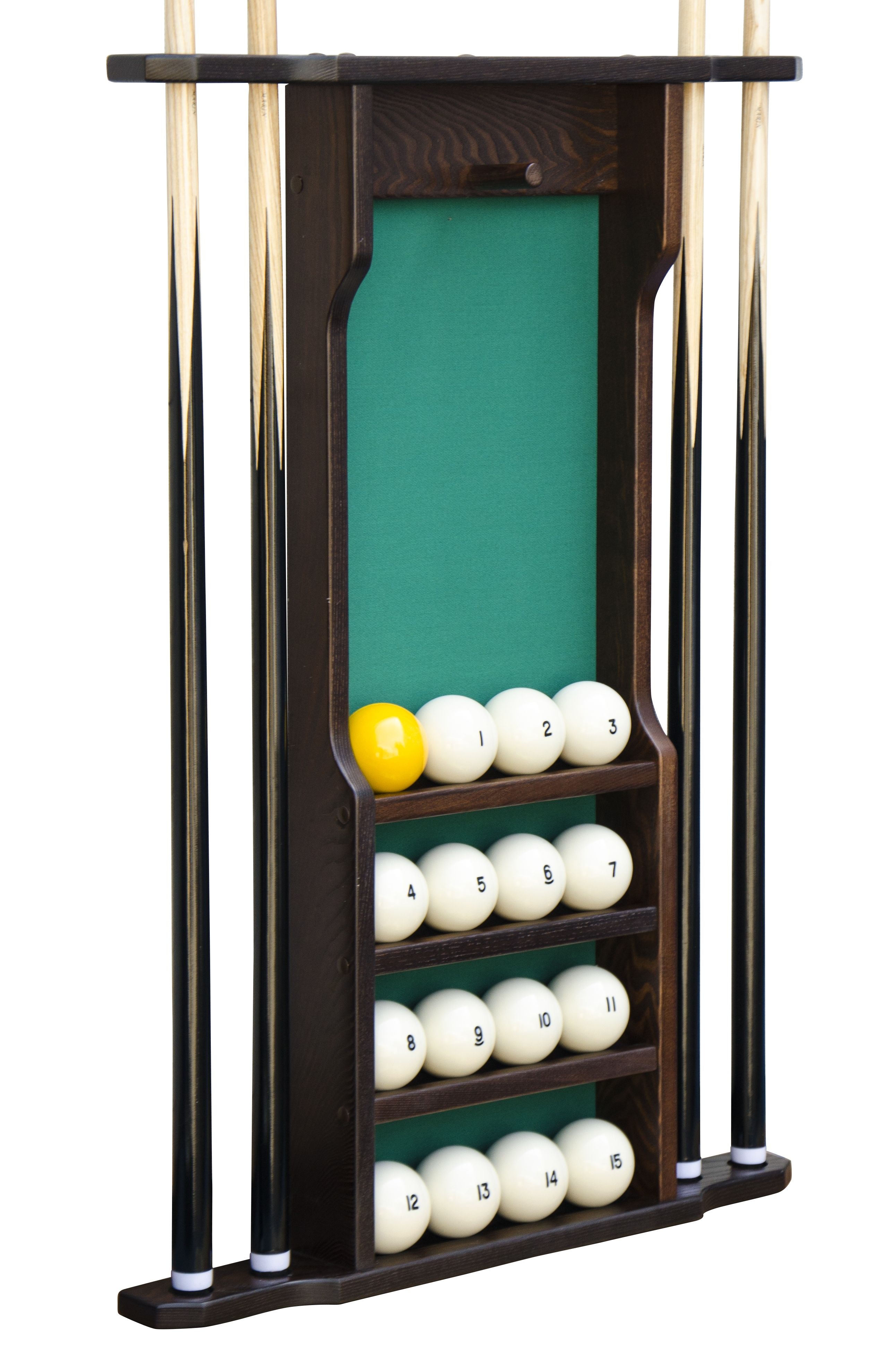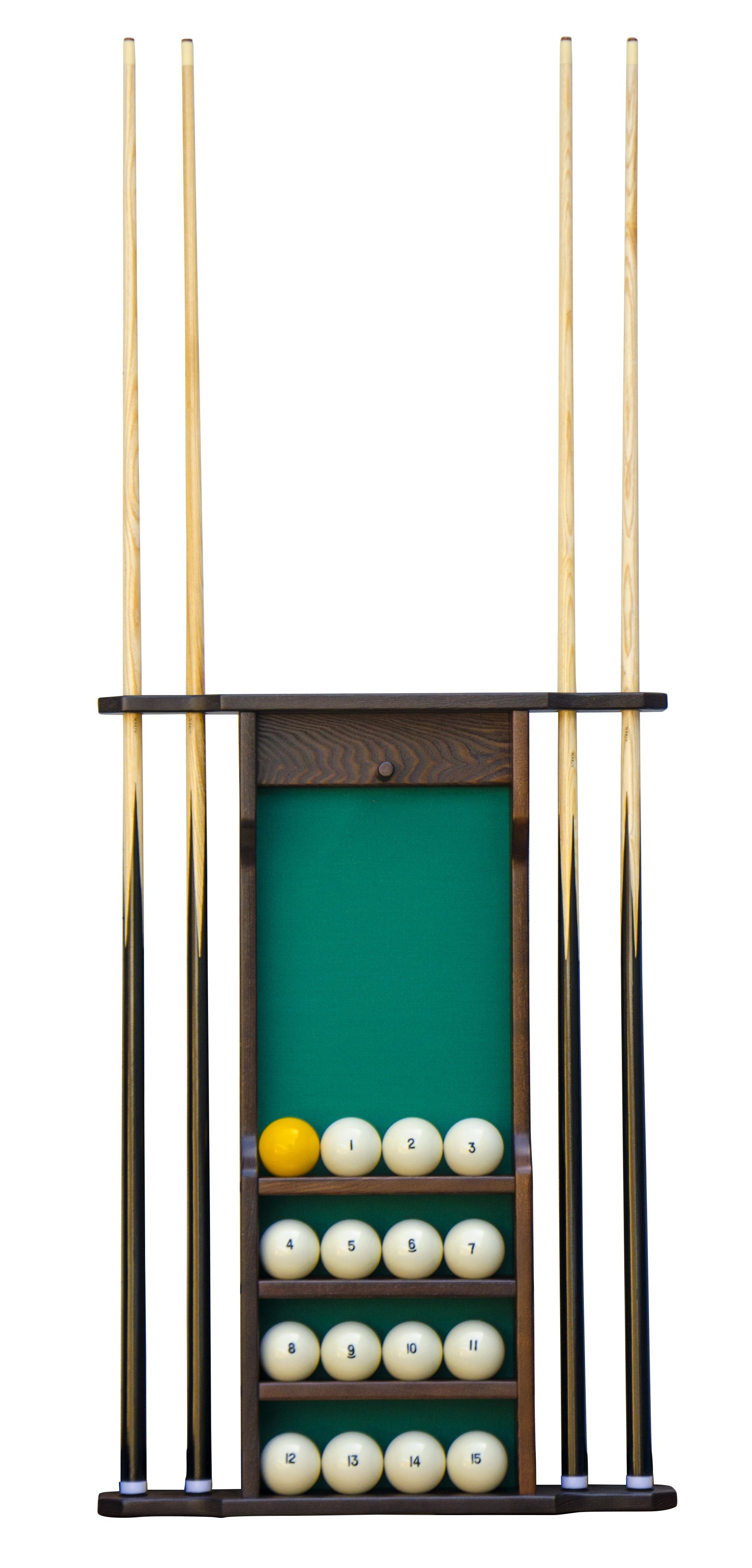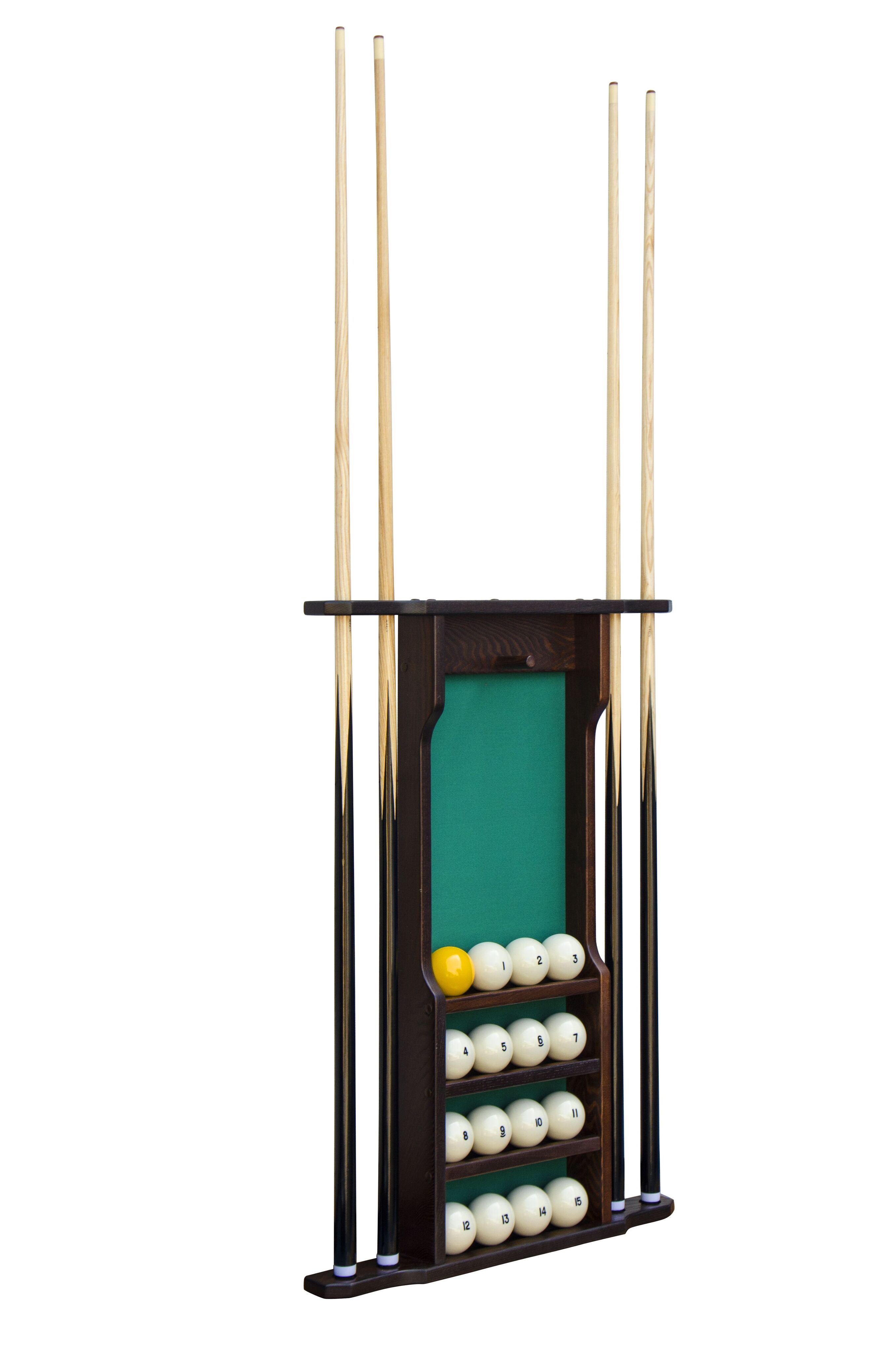 Настенная киевница на четыре кия с полкой для шаров.