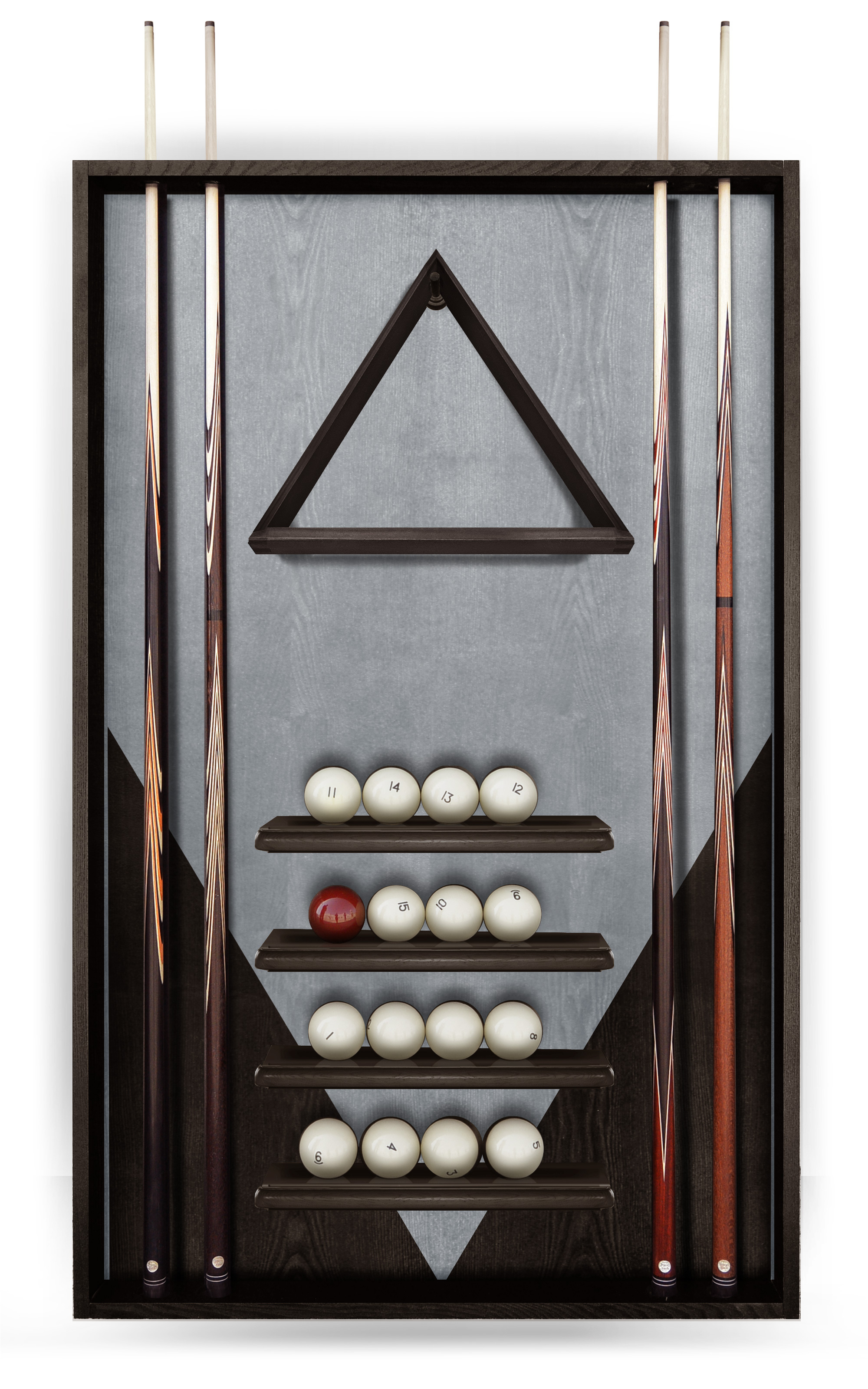 Настенная киевница Victory имеет полочки для размещения шаров, подвес для треугольника и предназначена для хранения 4 киев. Благородный дизайн киевницы сохраняет стилистику всей коллекции Victory.