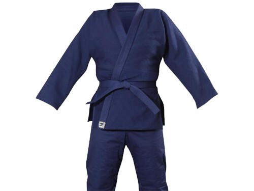 Кимоно из плетёной хлопковой ткани плотностью 650 - 670 г/м2 усилено двойными швами на плечах, рукавах и груди. Места, подверженные наиболее интенсивному воздействию (лацканы, колени, проймы, боковой разрез) усилены специальными вставками; внутренние швы обшиты тесьмой; цельнокроеный рукав. Брюки с усилением колена пошиты из хлопковой ткани, крепление на поясе — широкая вшитая резинка и шнур.