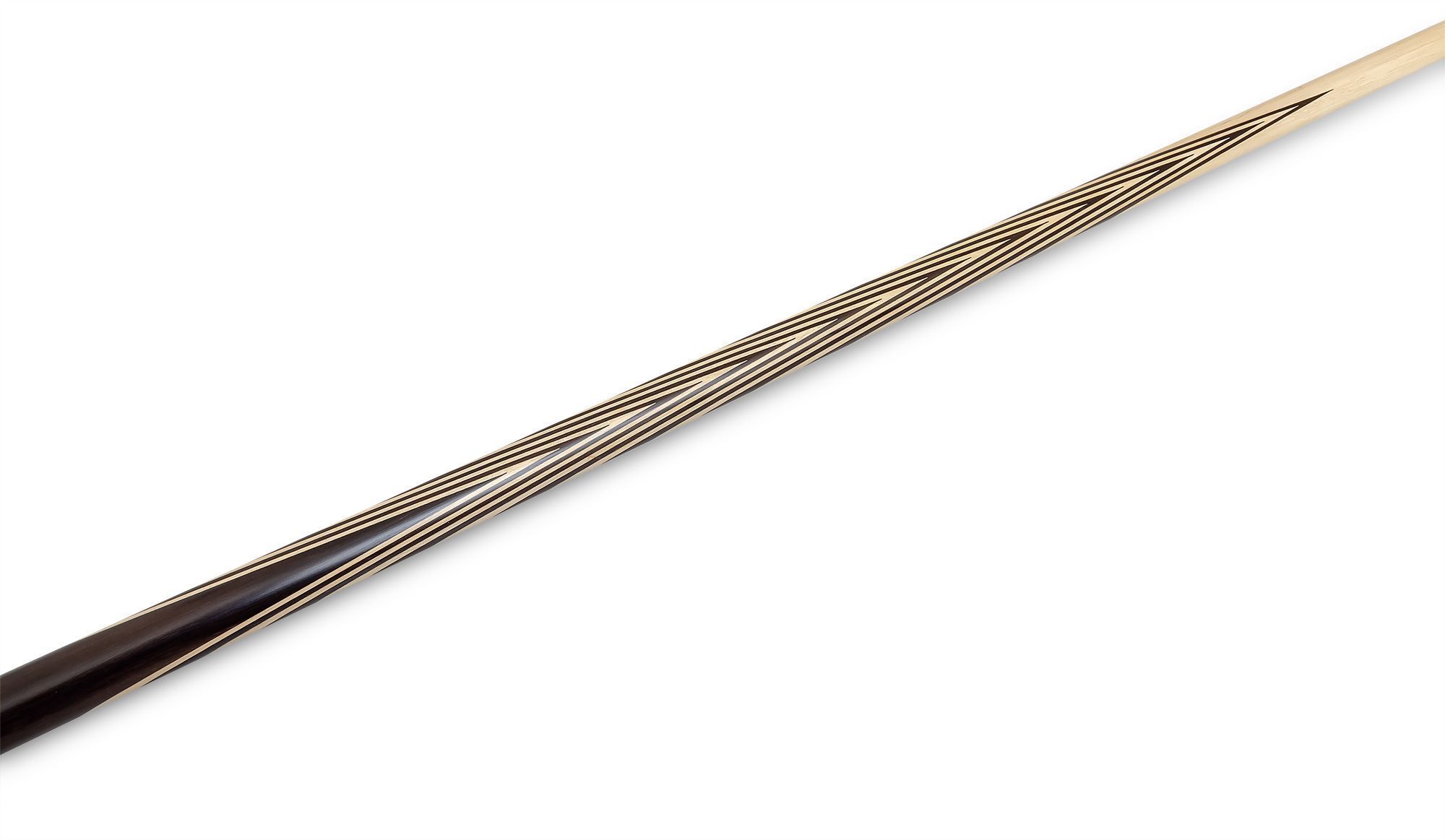 У этого кия запил классический, он же «Венский» и «Ласточкин хвост». Всего в склейке использовано 20 запилов. Считается, что чем их больше, тем стабильней изделие. Впрочем, каждый игрок в итоге подбирает параметры кия для себя вне зависимости от мнения общественности. Решающим фактором является индивидуальный стиль.