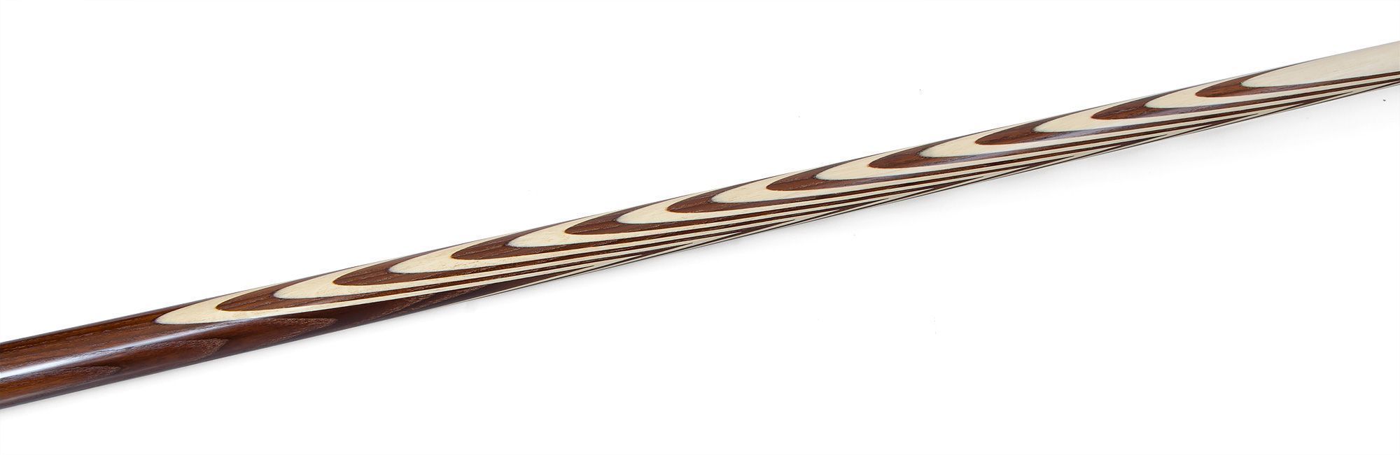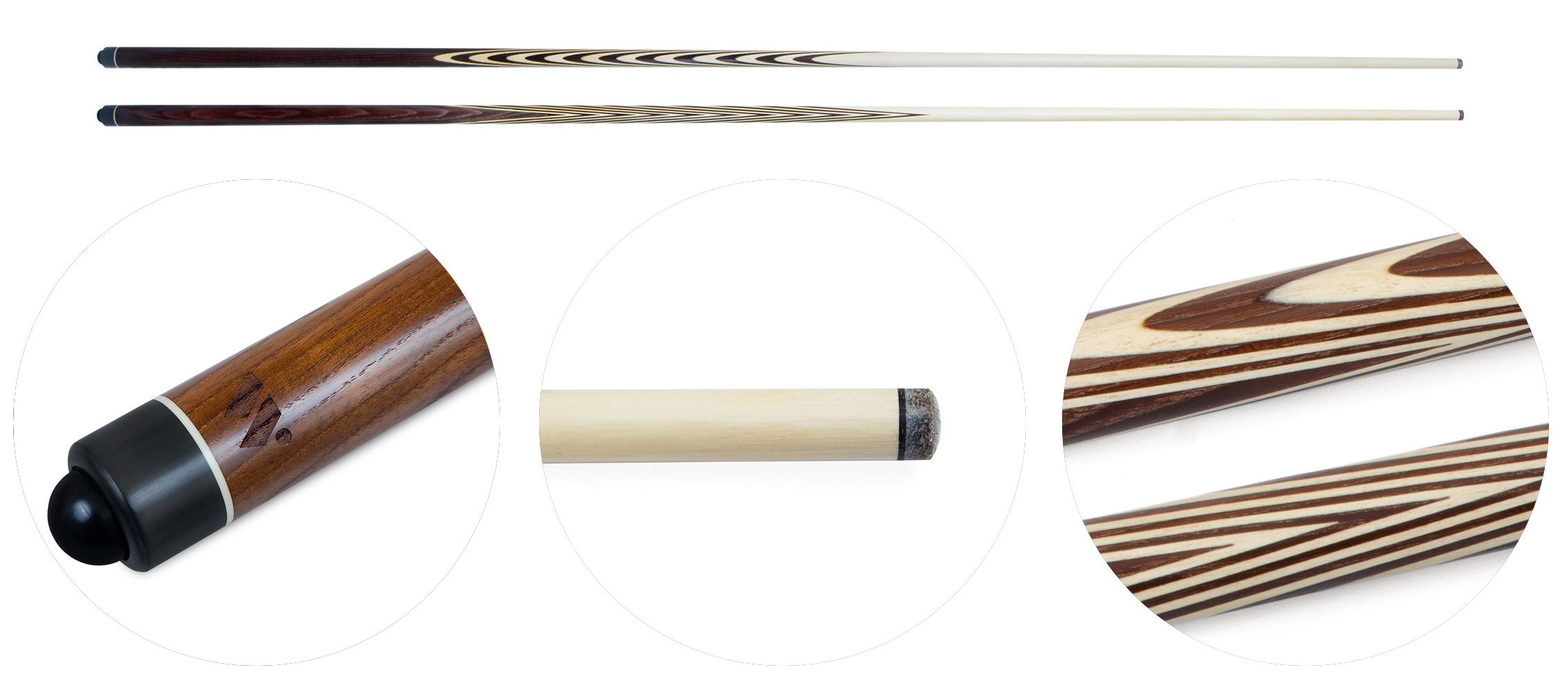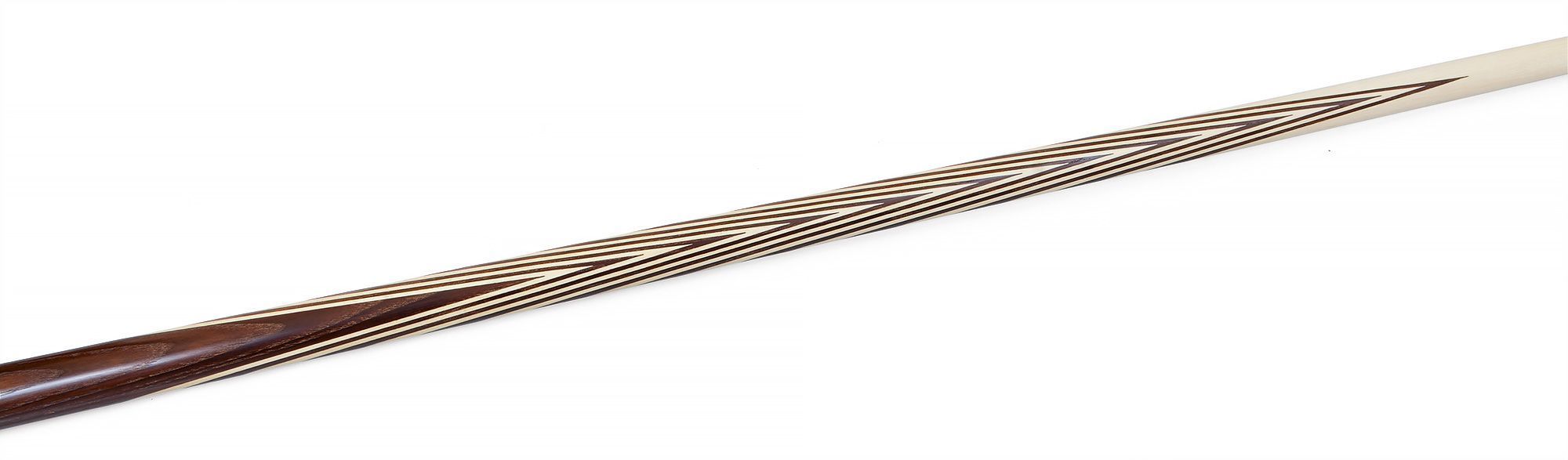 Цельный кий ручной работы, изготовленный из двух твердых пород дерева. Одна из них хорошо знакома любителям бильярда — это граб. В данном случае древесина кавказского граба, из обработки получившая только сушку по всем правилам. А, вот, вторая попадается значительно реже, поэтому её качества имеет смысл осветить подробней.