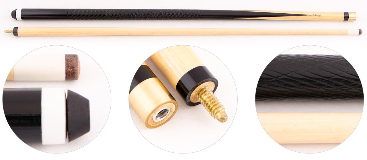 Кий любительского уровня, разборный. Бюджетная модель для начинающих игроков. Оснащен надежной скруткой из нержавеющей гладко отполированной стали и резиновым бампером, который защищает турник кия от механической деформации.
