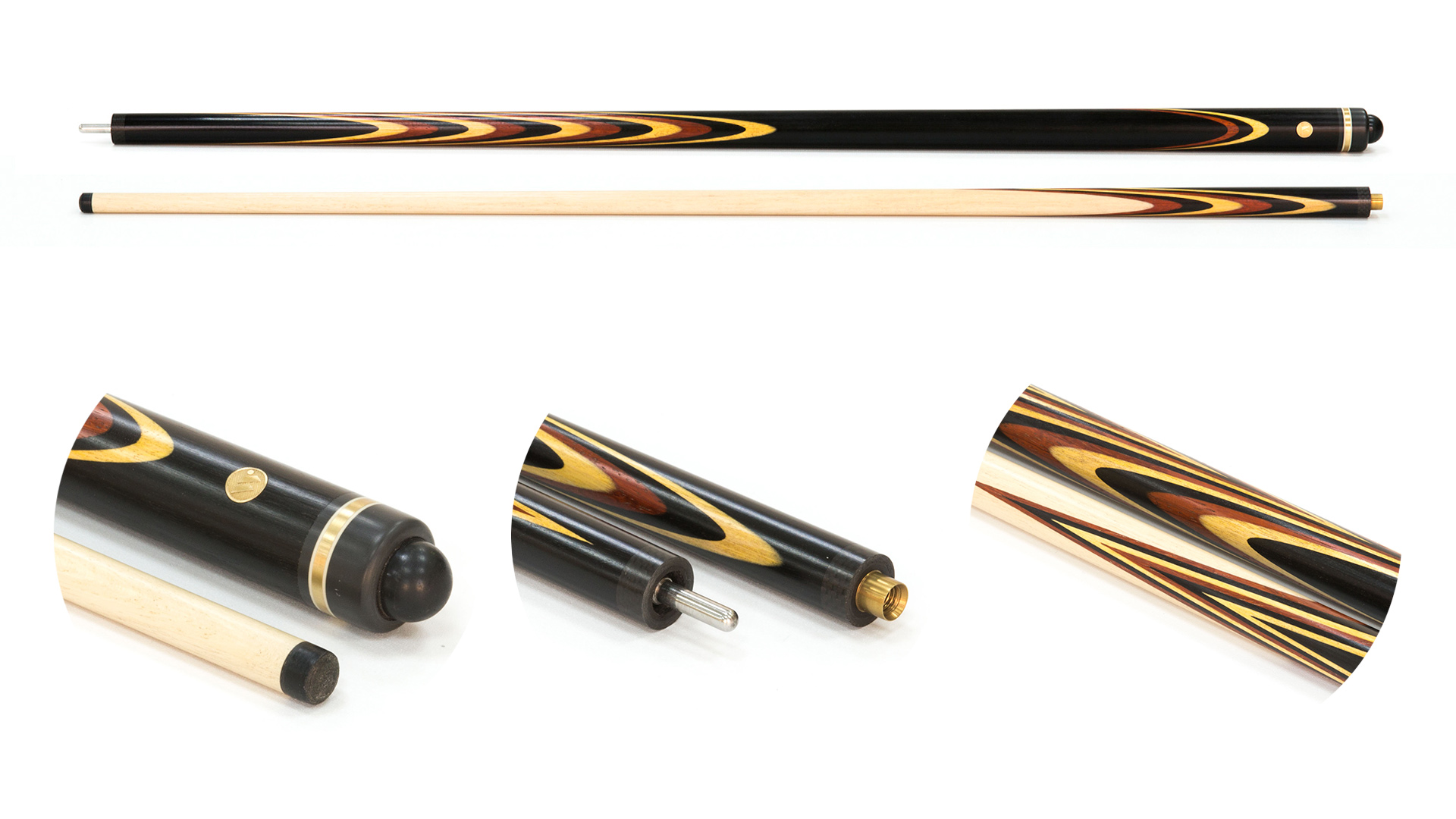 Двухсоставной кий, который впечатляет цветами! Непосвященный человек наверняка решит, мол, что в этом особенного. Ну, покрасили… Однако все, кто хоть немного знаком с темой бильярда, знают и ценят изделия такого типа.