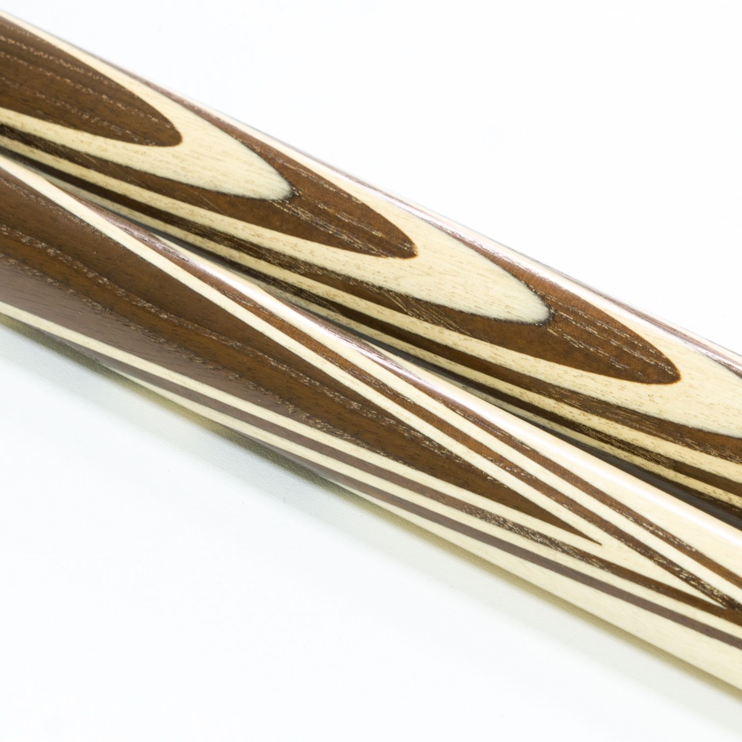 Составной кий ручной работы, выполненный из наиболее прочной древесины, добываемой в России. Это граб двух видов: кавказский и восточный. Второй после заготовки пропитывается сложным составом и приобретает вид как у эбенового дерева. Его цвет становится непроницаемо-черный без какого-либо отлива.