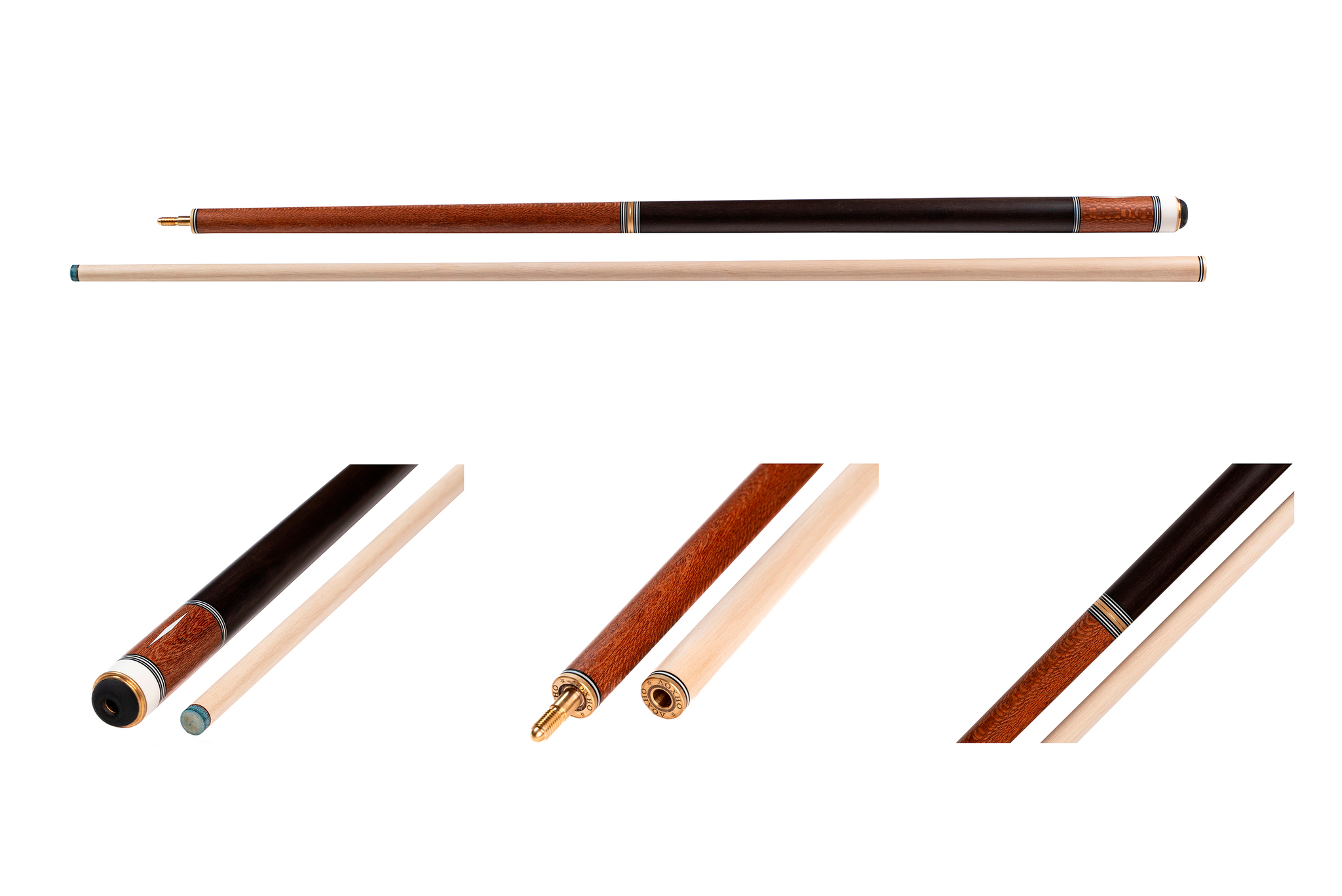 - Шафт выполнен из отборного граба — древесины, известной своей плотностью, долговечностью и стабильностью. Это гарантирует прямолинейность кия и точность каждого удара.