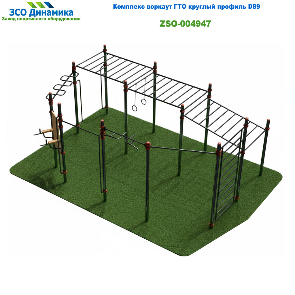 Комплекс воркаут ГТО круглый профиль представляет собой конструкцию, состоящую из тринадцати вертикальных опорных столбов из круглопрофильной трубы, на которые устанавливаются - перекладины, шведская стенка, рукоход, брусья изготовленные из круглопрофильной трубы. Фиксация всех навесных на стойки элементов происходит с помощью стальных хомутов. Сварные швы всех элементов изделия тщательно обработаны и зачищены. Поверхность всех элементов изделия окрашена порошковым напылением в электростатическом поле. Вертикальные столбы бетонируются в грунт. Во все внешние отверстия труб комплекса - установлены пластиковые заглушки. Комплекс поставляется разобранном виде.