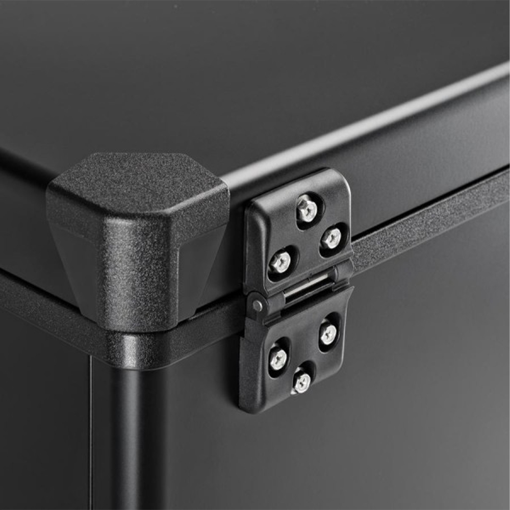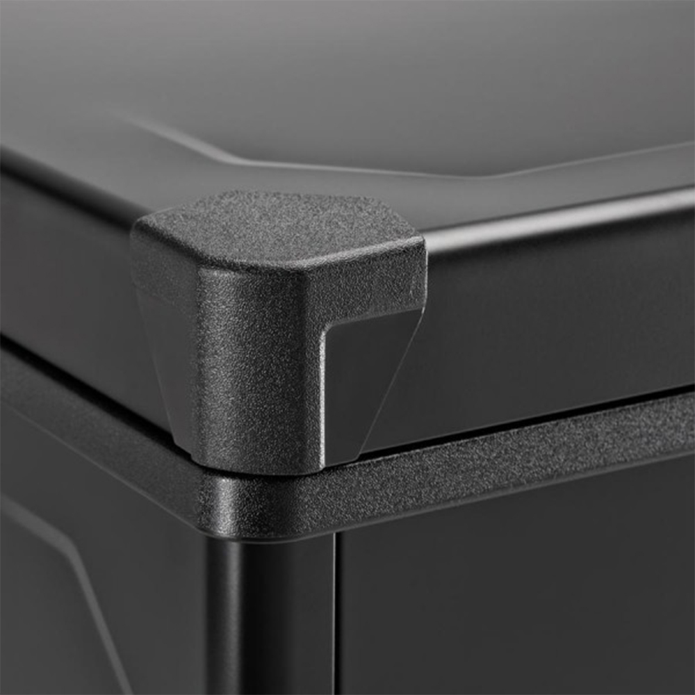Внешние стенки холодильника изготовлены из окрашенной листовой стали, а углы защищены пластиковыми накладками.