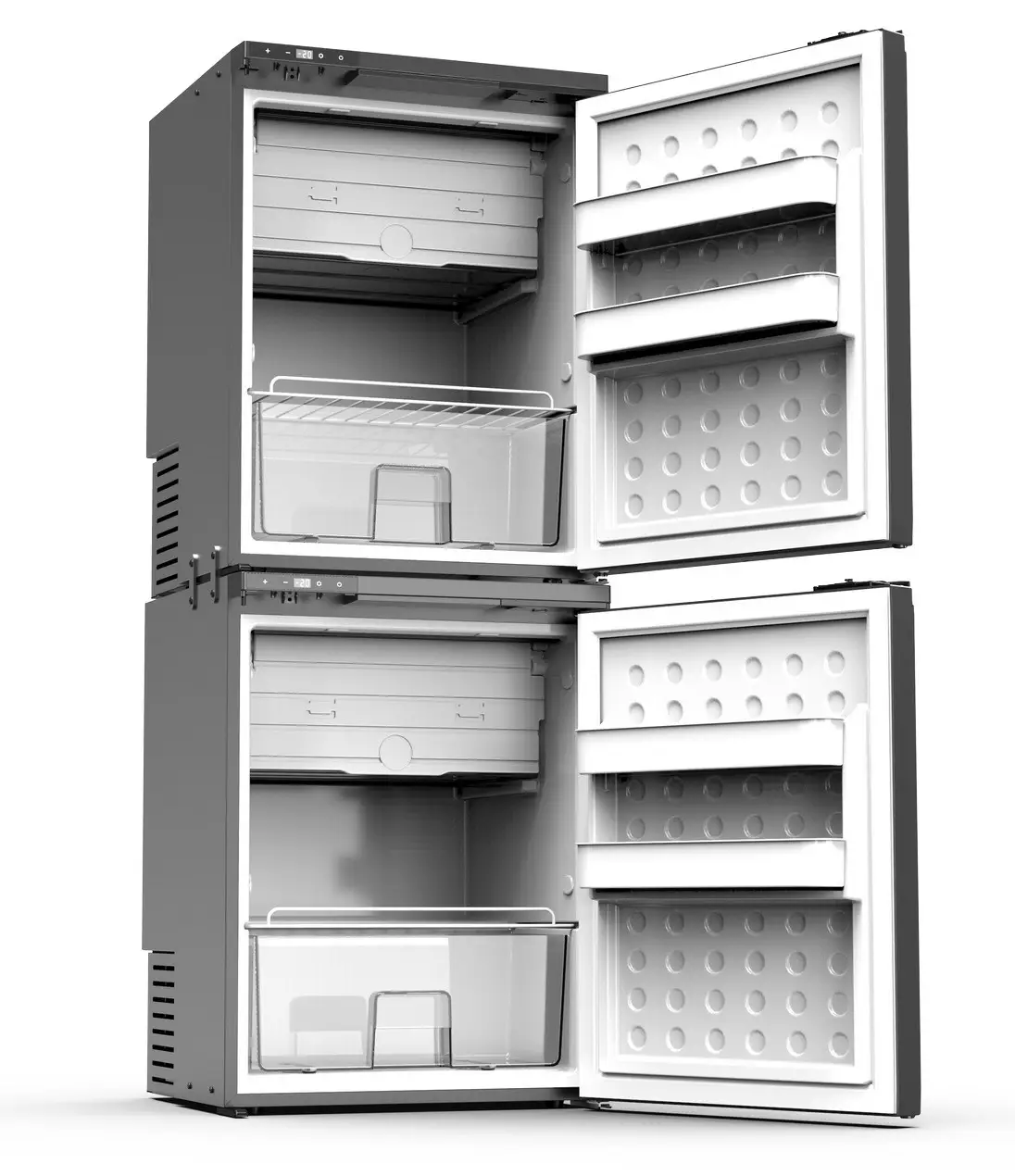 MCR-130-универсальный и вместительный холодильник-морозильник для встраивания с объемом 130 л и виброустойчивыми компрессорами. Эта двух камерная модель с цифровым дисплеем и двумя отделениями эффективно работает в режиме холодильника/ морозильника. И что важно, пользователь, в любой момент, самостоятельно может выбрать необходимый режим охлаждения на электронной панели управления в диапазоне от +10°С до -20°С, а также, с помощью Bluetooth, дистанционно управлять холодильником-морозильником со специального мобильного приложения с помощью смартфона.
