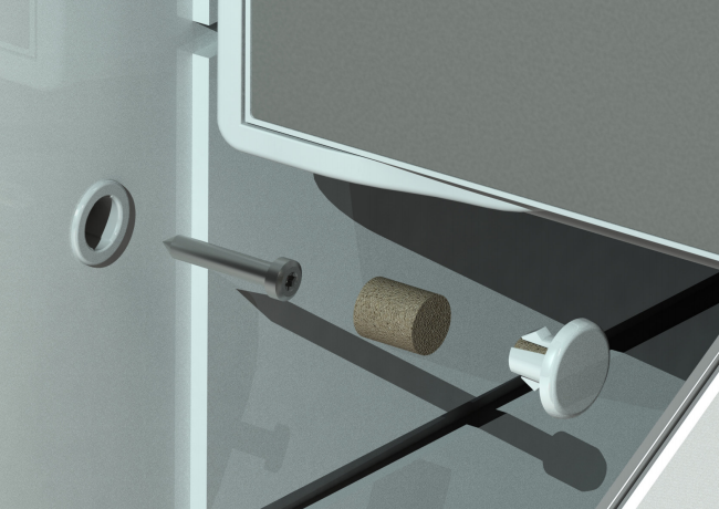 Во внутренней части холодильника имеются специальные заглушки, закрывающие технологические отверстия, через которые посредством саморезов, осуществляется фиксация холодильника во встраиваемой нише.