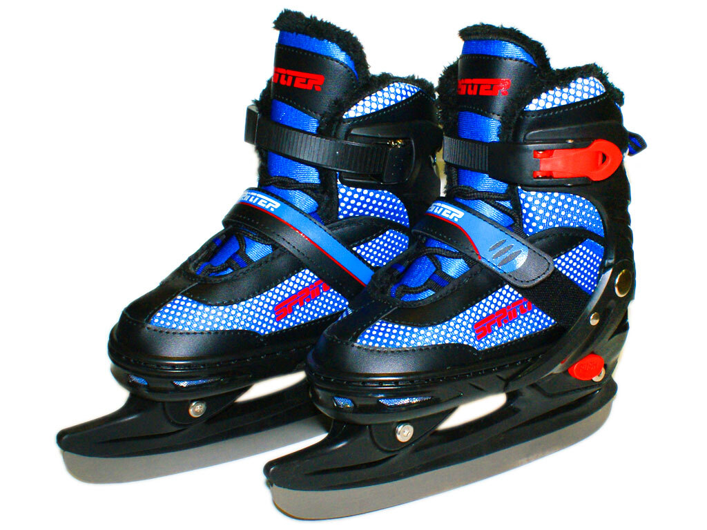 Раздвижные коньки с мехом SPRINTER. Такие коньки предназначены для любительского катания на льду. Верх ботинка водонепроницаемый из искусственной кожи и пластика. Подкладка из искусственного меха. Яркий и стильный дизайн не оставит коньки без внимания. В комплекте имеется удобная сумка на молнии для хранения и транспортировки коньков. Надежную фиксацию на ноге обеспечивают три типа застежек: шнуровка, липучка и пластиковая лямка с металлическим фиксатором.