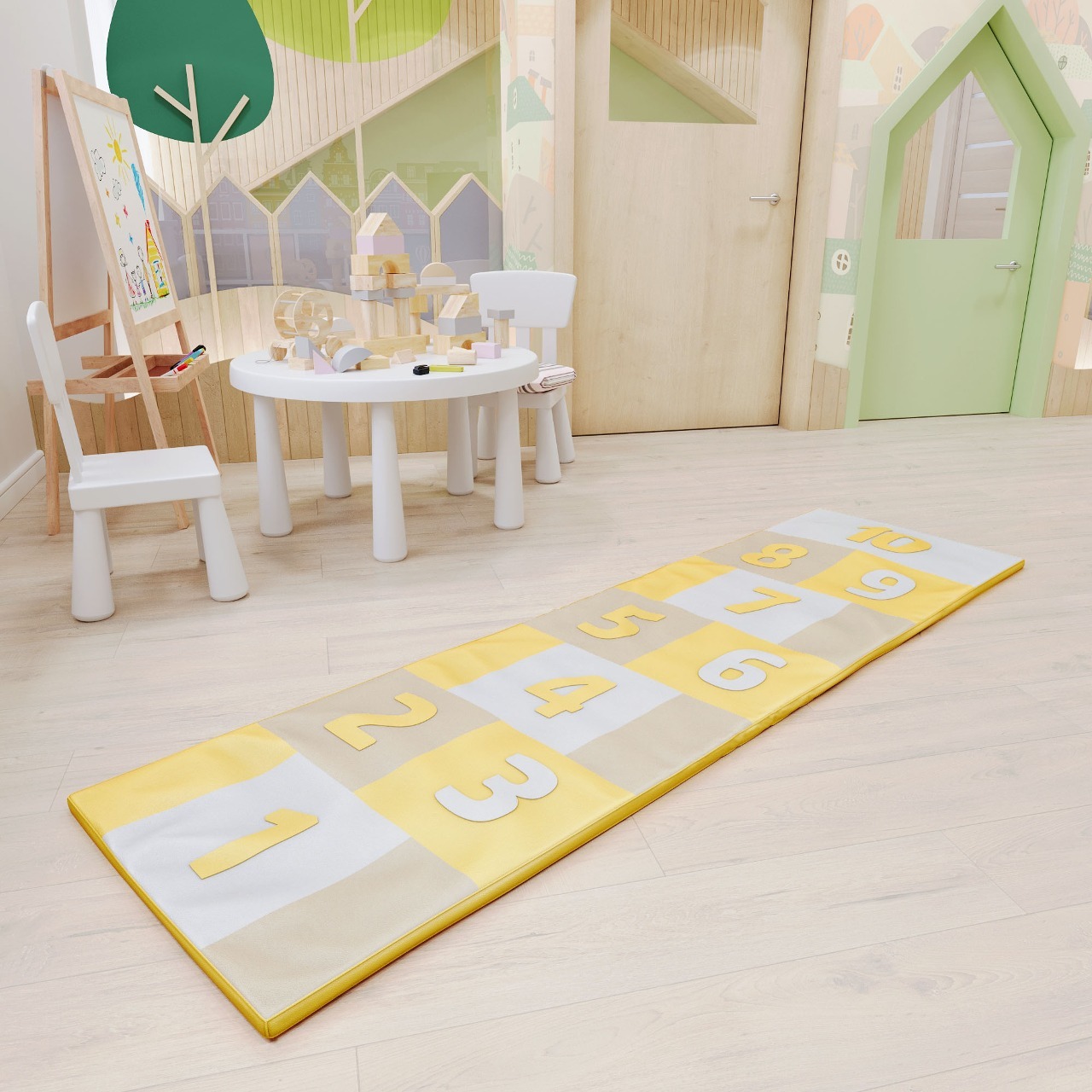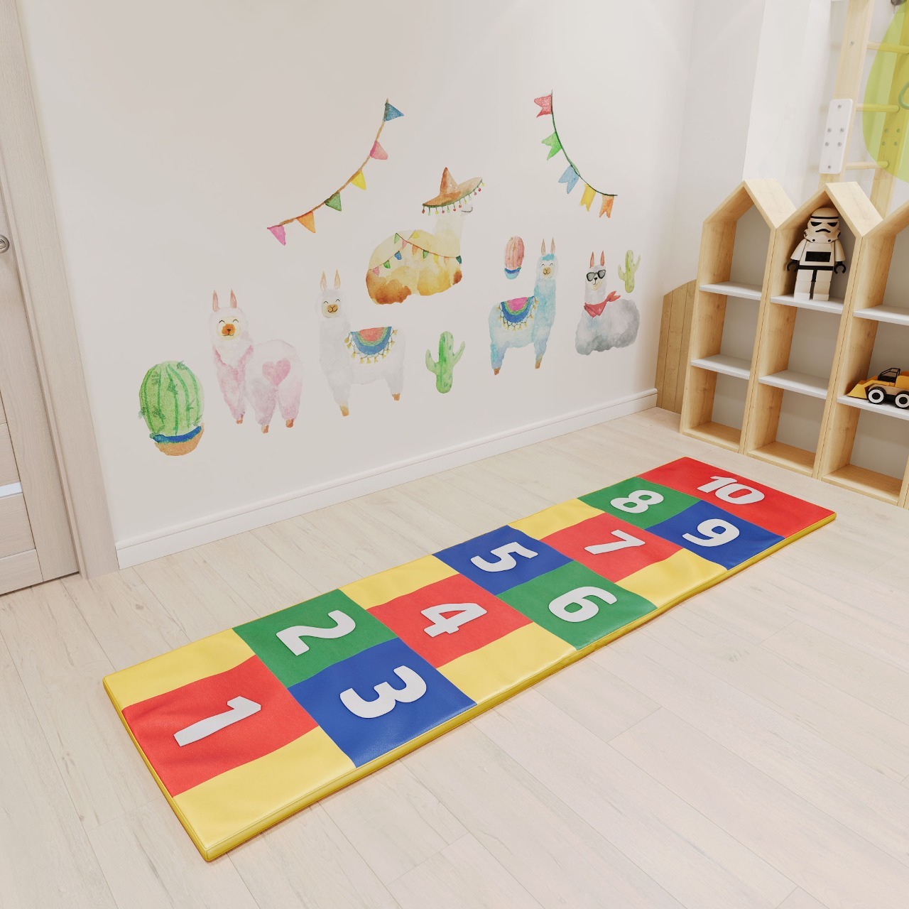 Коврик «Классики» - это цветная дорожка с изображением цифр для игры в классики. Так же помогает изучить цифры, цвета и развить координацию. Габаритные размеры 2100 х 600 мм. Допустимая нагрузка 50 кг. Вес с упаковкой 2 кг.