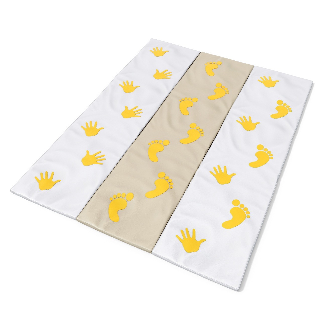 Коврик «Путаница» - это яркая трехцветная дорожка. На ее поверхности изображены ладошки и пяточки, на которые нужно наступать во время занятий. Коврик отлично развивает внимание и координацию движений, закрепляет зрительные навыки, укрепляет мышцы. Габаритные размеры: 2000 х 1500 мм. Допустимая нагрузка 50 кг. Вес с упаковкой 2,5 кг