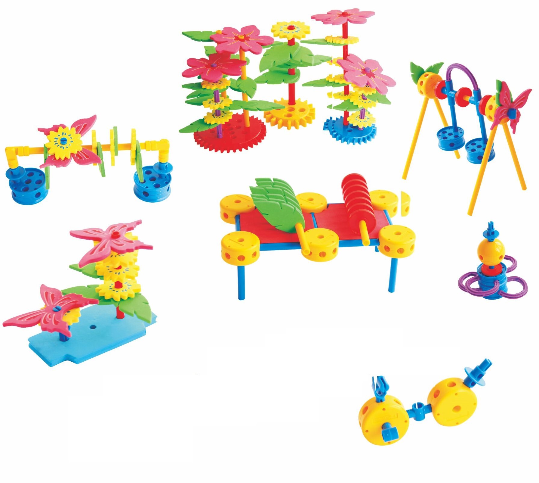 - 196 деталей: от базовых элементов (шайбы, стержни, крестовины) до декоративных (цветы, бабочки, фигурки);