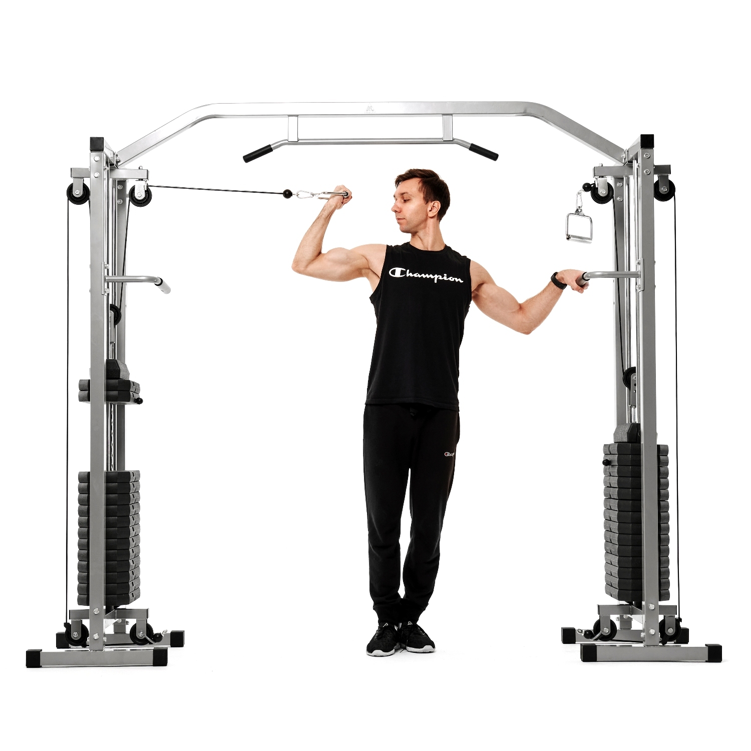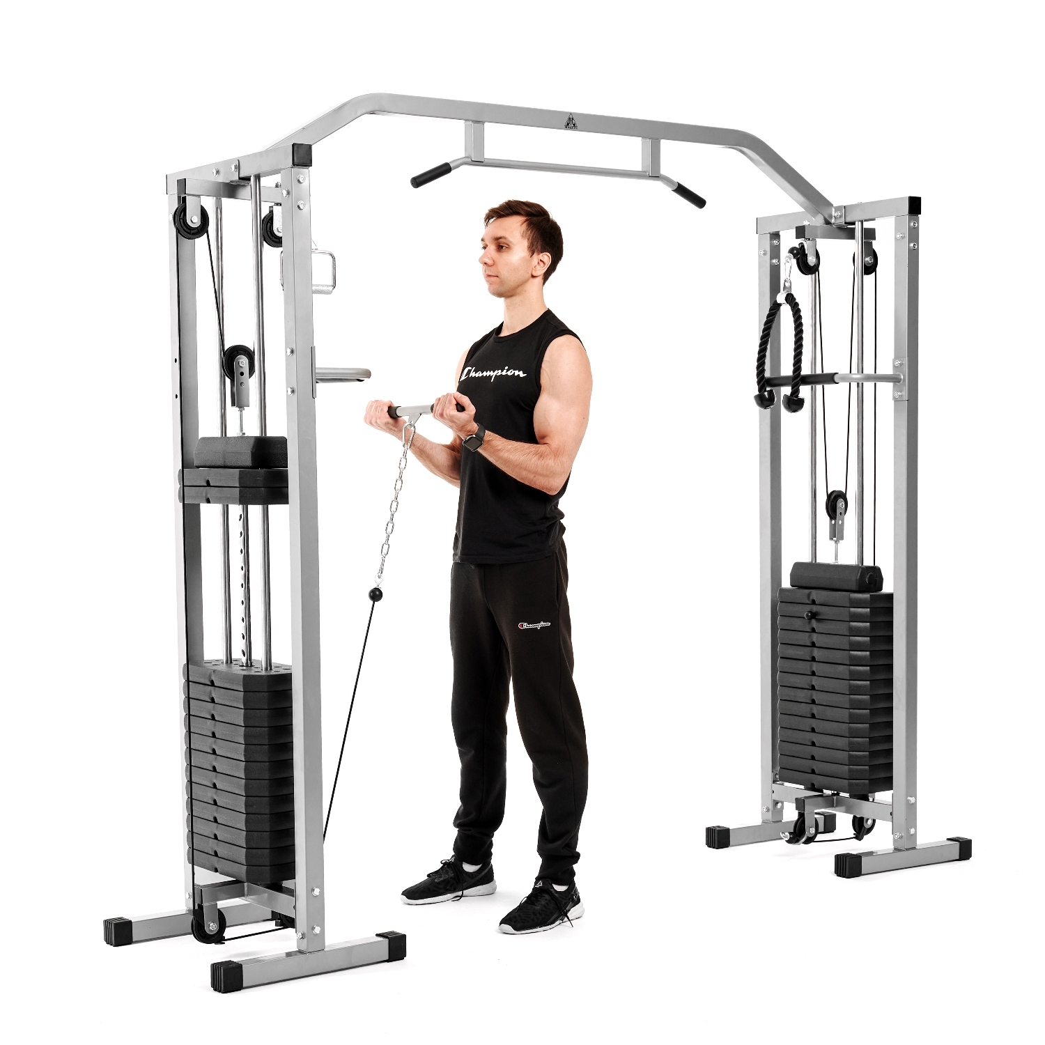 Тренажер со встроенными весами позволяет отлично прорабатывать мышцы верхней части тела благодаря множеству упражнений. Вращающиеся ролики верхних и нижних блоков предлагают оптимальное выполнение упражнений. Изготовлен из высококачественного стального профиля размером 50 х 50 мм.