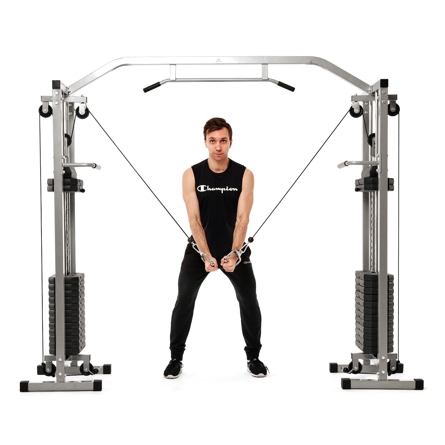 Кроссовер оснащён металлическими ручками с нескользящим хватом, которые регулируются по высоте в 21 положении. При выполнении упражнений с верхней тягой, нагружаются мышцы рук, груди и верхнего отдела спины.