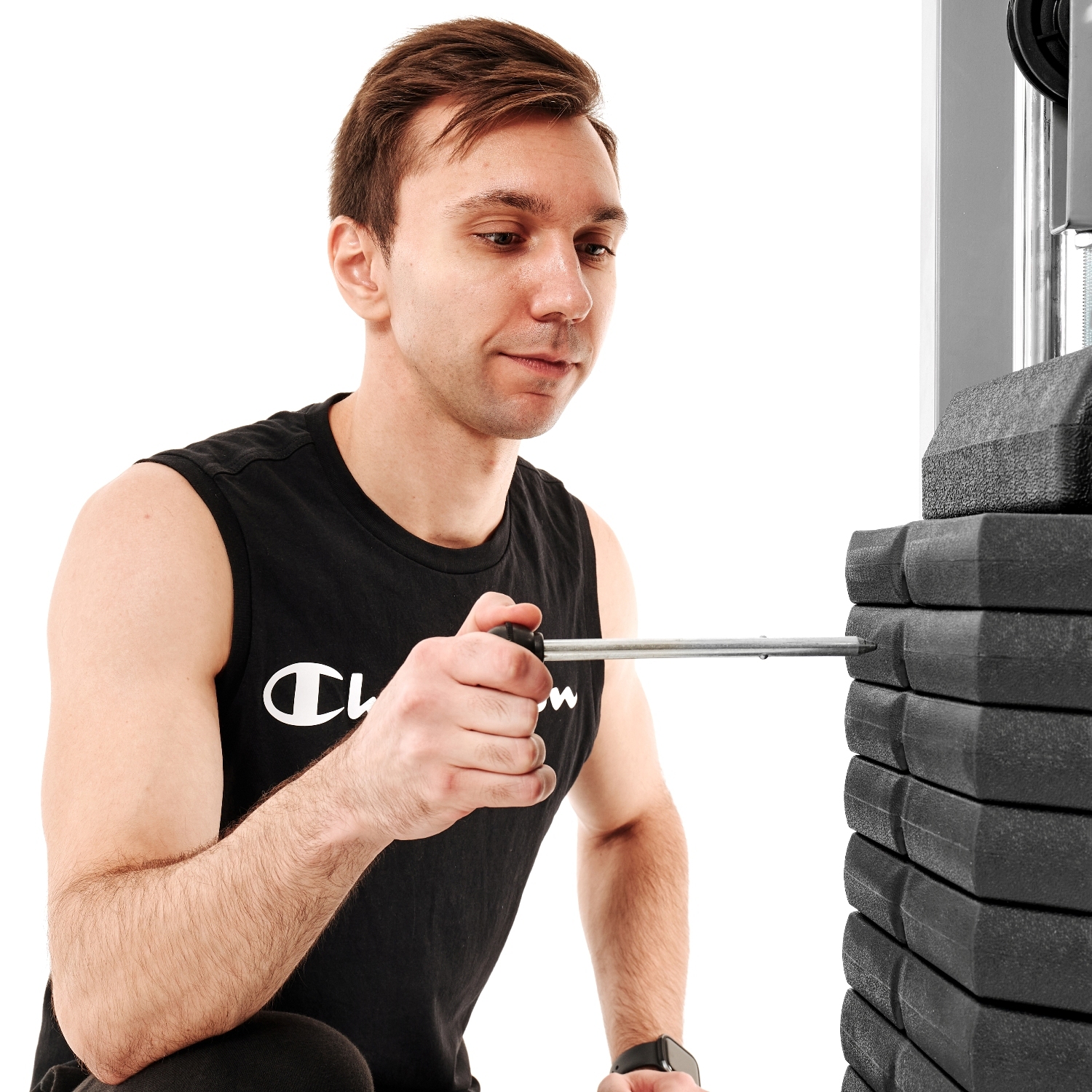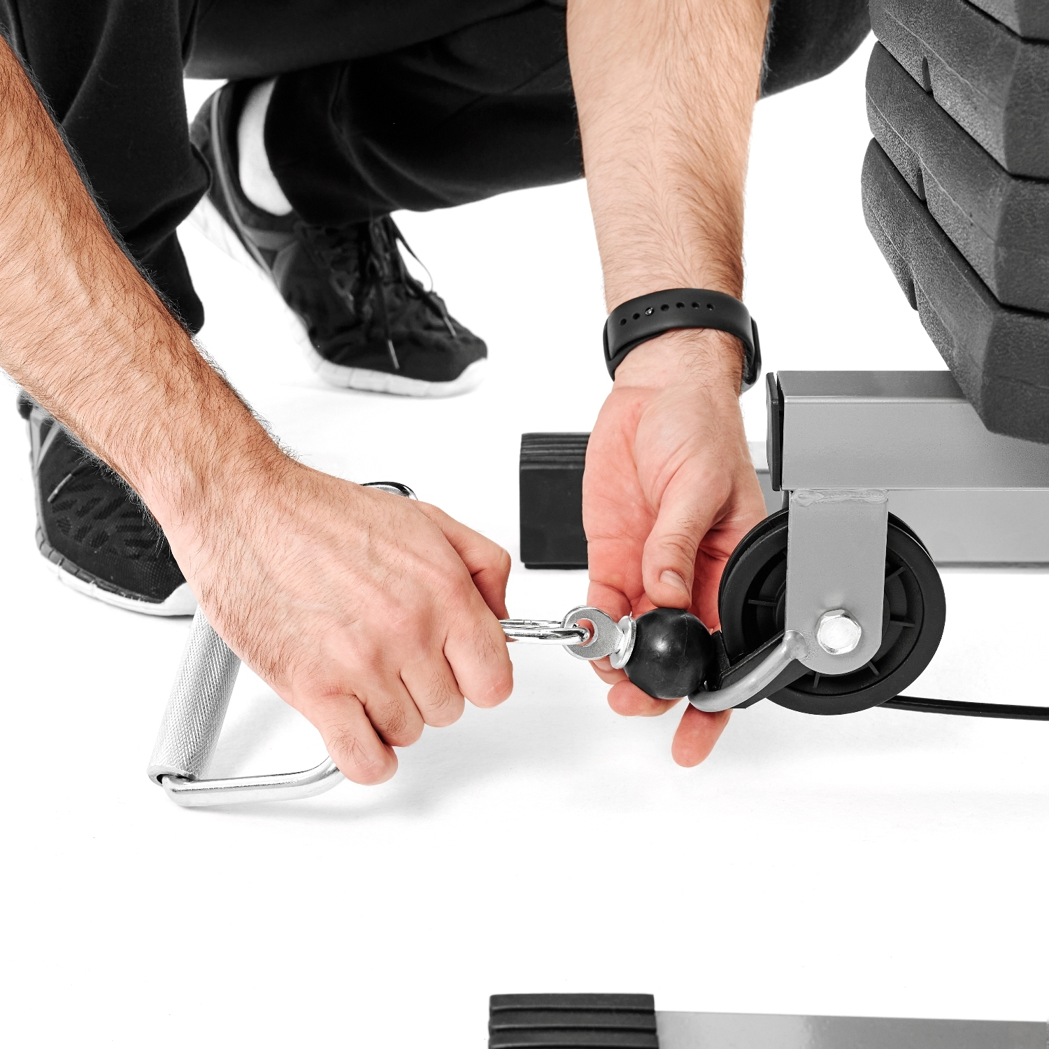 Ручка, регулируемая по высоте, входит в комплект кроссовера. С её помощью вы сможете более точечно прокачать мышцы бицепса или трицепса.