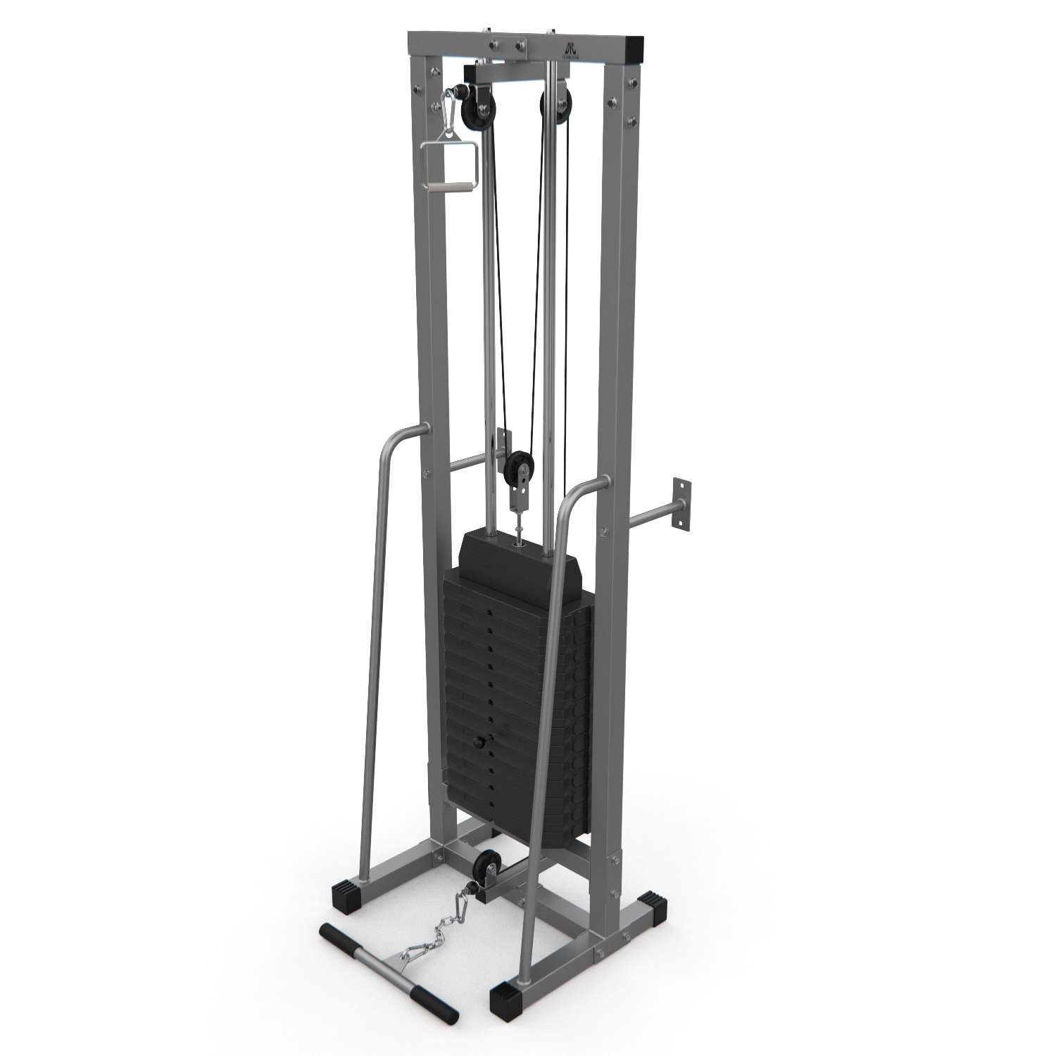Многофункциональный силовой тренажер (кроссовер) со встроенным весовым стеком общей массой 75 кг.