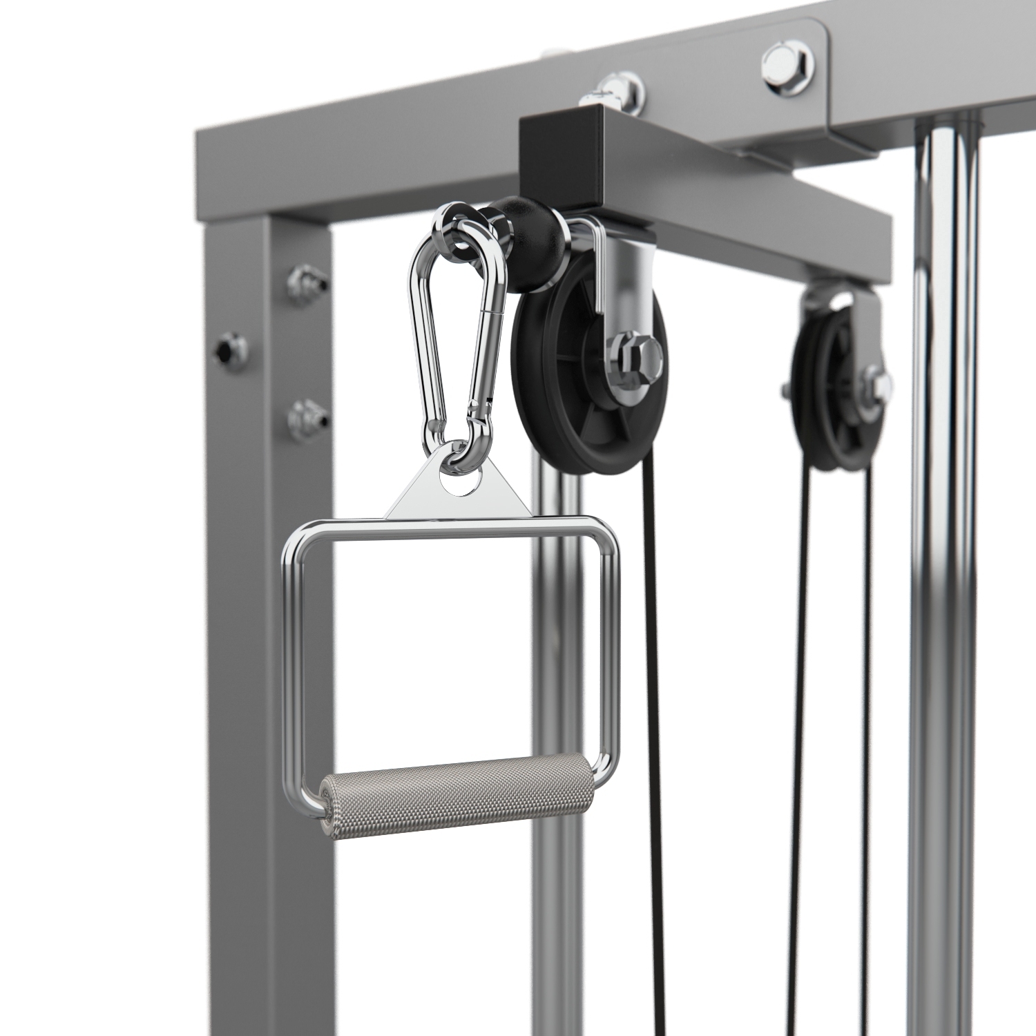 Позволяет отлично прорабатывать мышцы верхней части тела благодаря множеству упражнений. Вращающиеся ролики верхнего и нижнего блоков предлагают оптимальное выполнение упражнений.