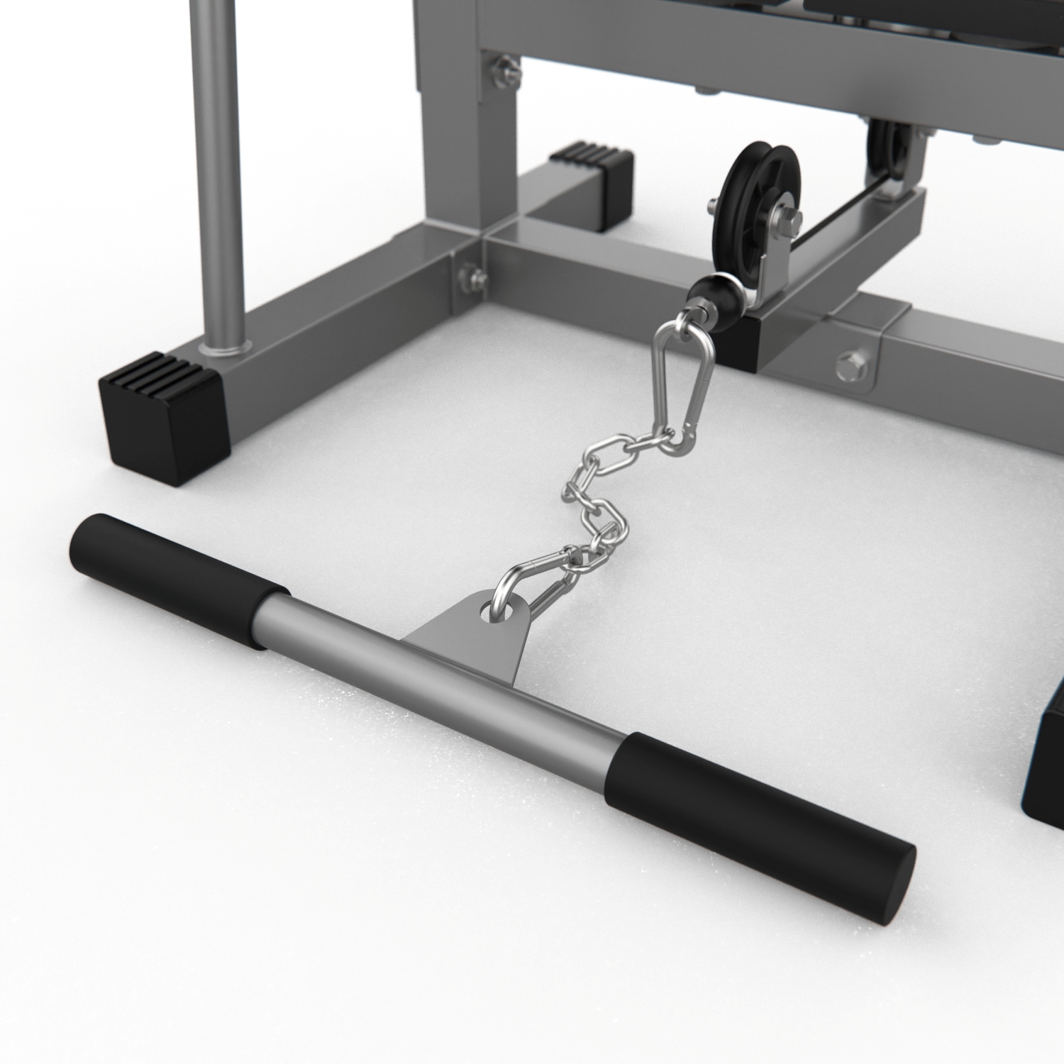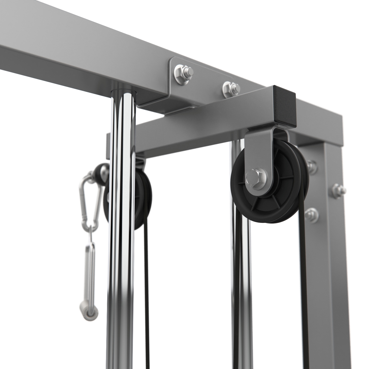 Позволяет отлично прорабатывать мышцы верхней части тела благодаря множеству упражнений. Вращающиеся ролики верхнего и нижнего блоков предлагают оптимальное выполнение упражнений.
