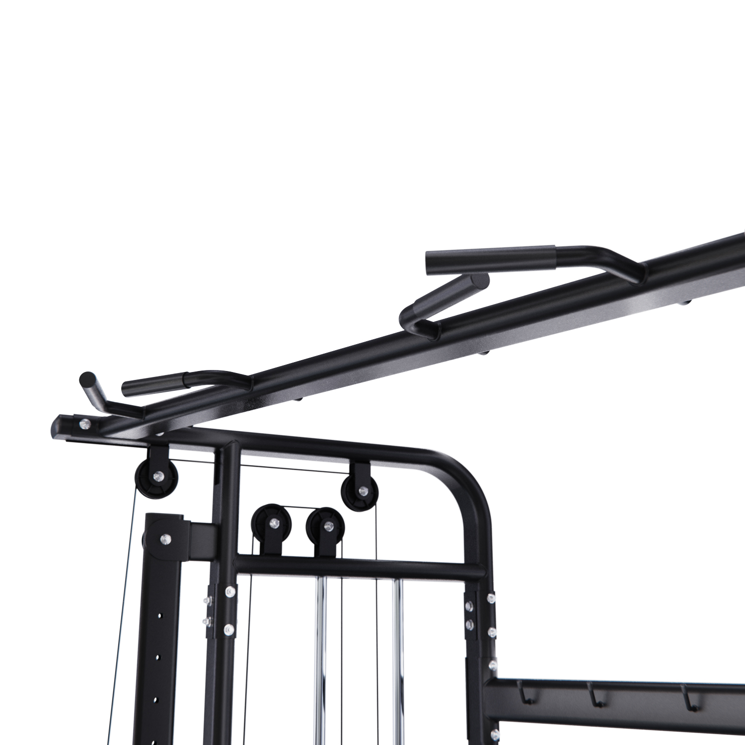 Турник с противоскользящими ручками подходит для укрепления спины, рук и плечевого пояса. В комплект также входит канат (гибкая тяга) для упражнений на трицепс, бицепс, плечи и кор.