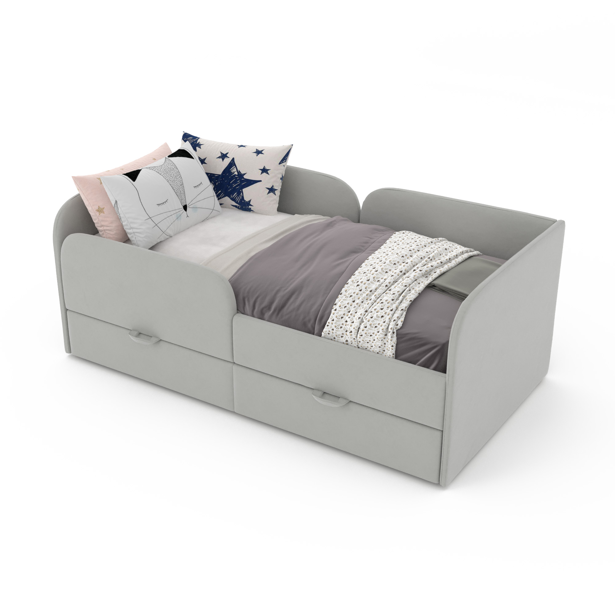 Мягкая защита и уют: Высокие мягкие бортики — это не только стильный дизайн, но и безопасность. Они уберегут от случайных ударов во сне, создадут ощущение уютного гнёздышка и психологический комфорт.