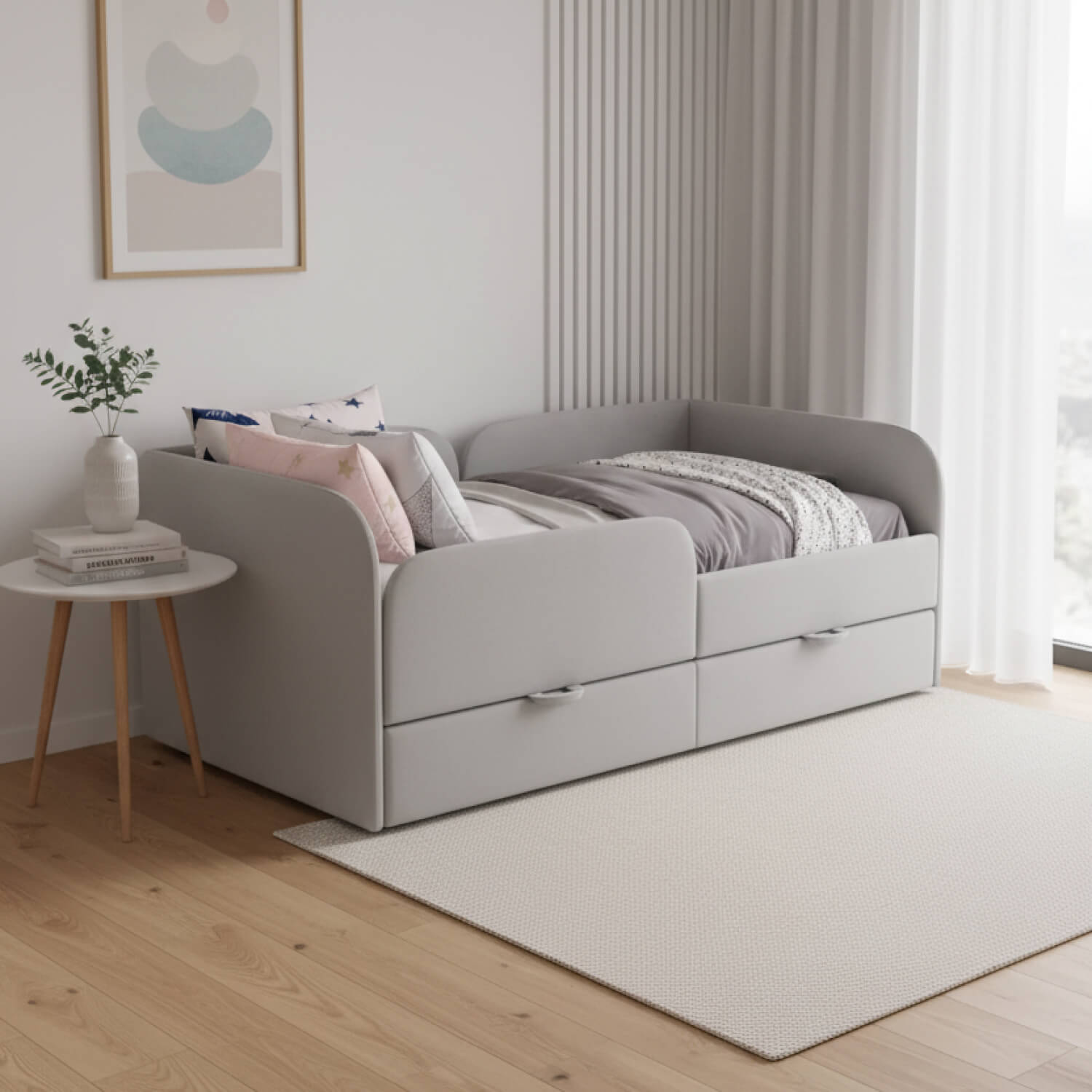 * Безопасность. Мы заботимся о безопасности ваших детей. Бортик кровати предотвращает падение во время сна, а мягкие формы исключают возможность травм.
