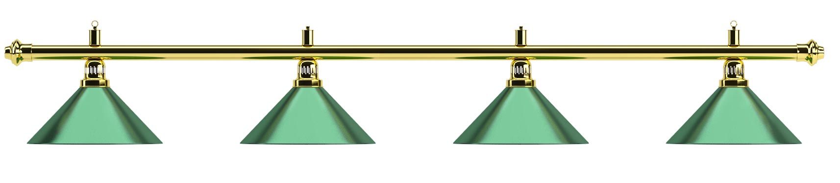 Лампа на четыре плафона "Evergreen" (золотистая штанга, зеленый плафон D35см)