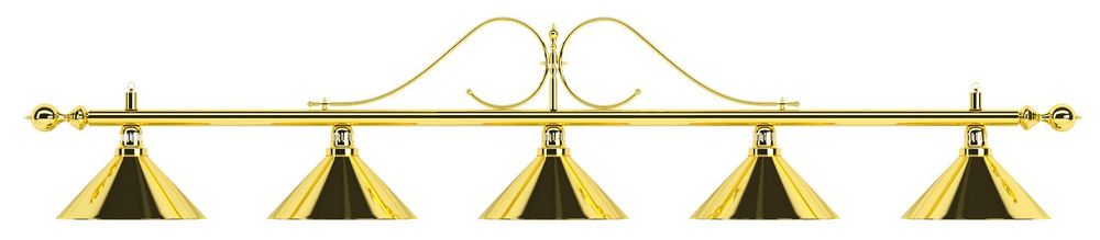 Изящная лампа классического дизайна органично впишется в любой интерьер. Устойчивые к механическим повреждениям металлические плафоны на металлической штанге обеспечивают не только качественное освещение игрового поля, но и создадут уютную атмосферу в бильярдном клубе или кабинете. Комплектуется цепочками и чашками для крепления к потолку. Предназначена для равномерного освещения игрового поля 10-12 футовых столов.