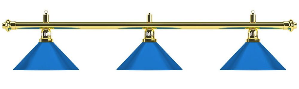 Лампа на три плафона "Blue Light" (золотистая штанга, синий плафон D35см)
