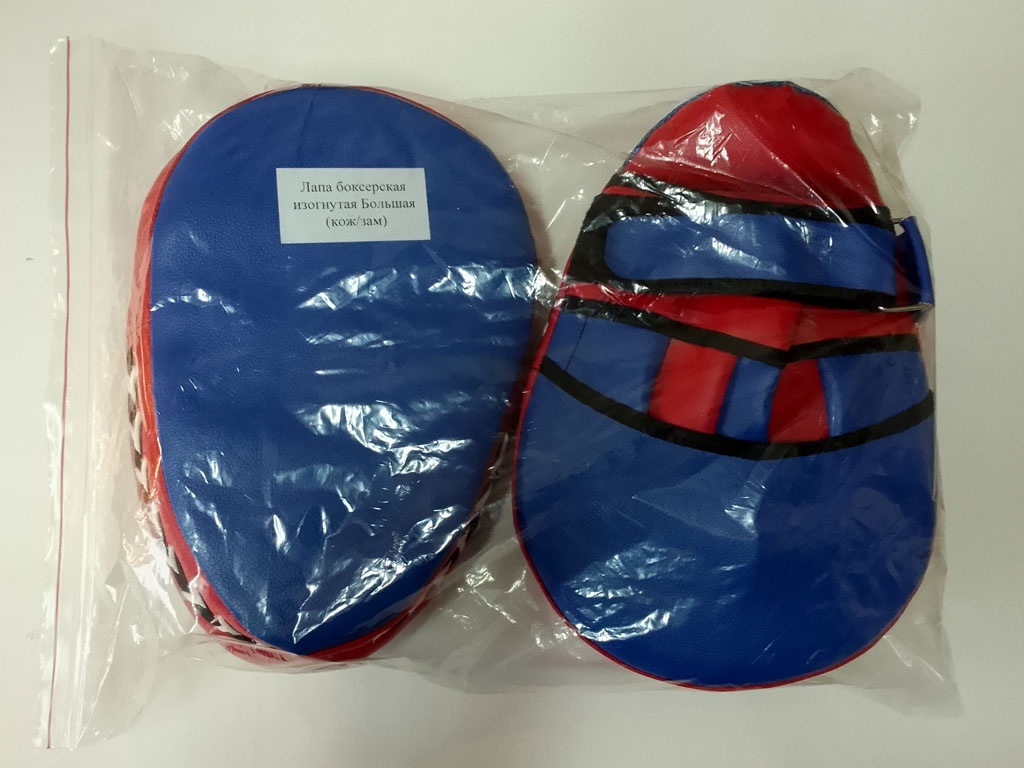 Лапа боксёрская большая (пара) изготовлена из искусственной кожи, плотная перчатка фиксирует кисть, снижая риск получения травмы. способствуют развитию техники и точности нанесения ударов. Подходит для спортивных секций и клубов.