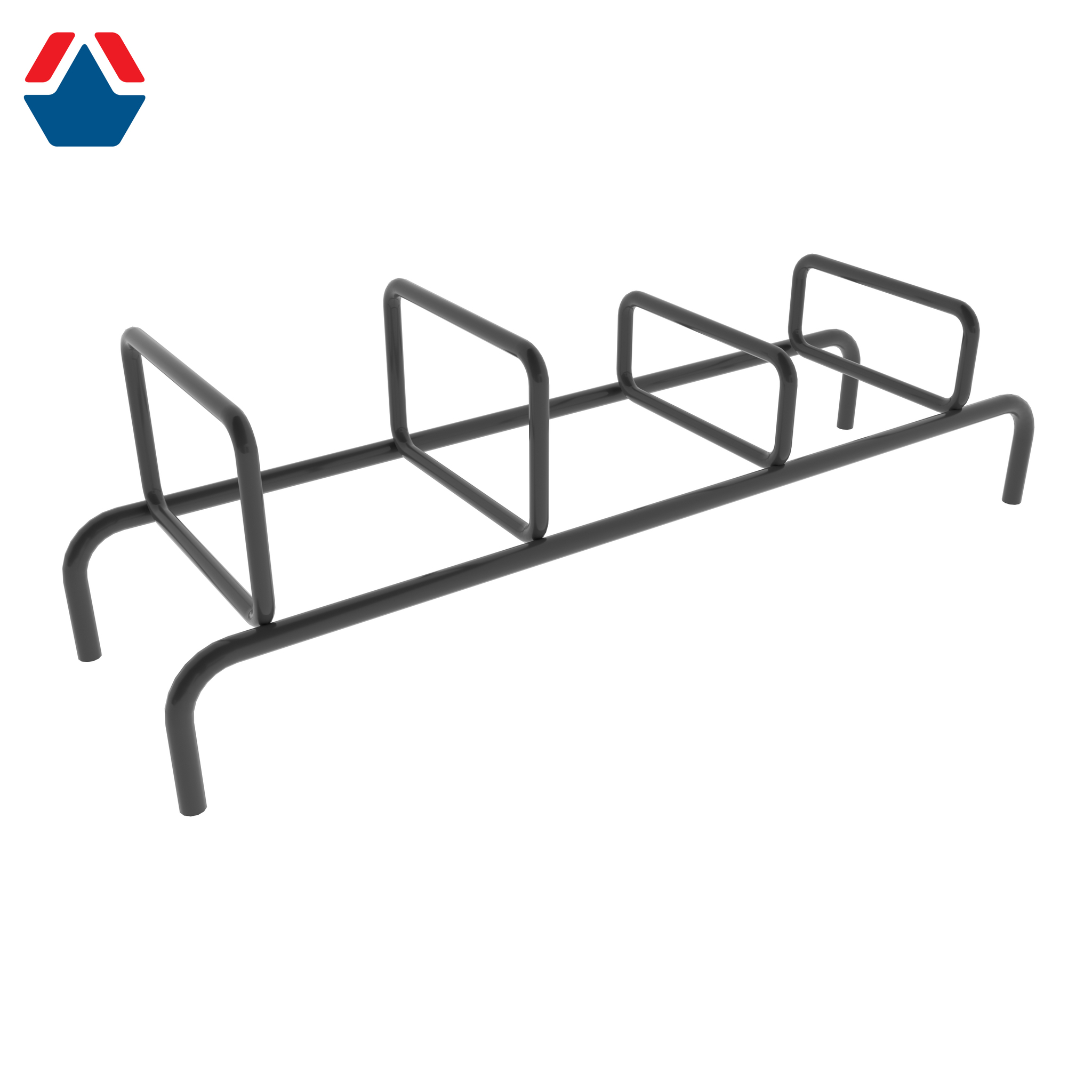 Монтаж стальной конструкции, изготавливаемой из труб, прошедших антикоррозийную обработку, осуществляется бетонированием на глубину 30 сантиметров. Длина изделия составляет 2400 миллиметров, высота – 600 мм. Диаметр стальных труб – 34 и 42 миллиметра. Лавка с упорами – это сварная металлическая конструкция, обладающая высокой прочностью.