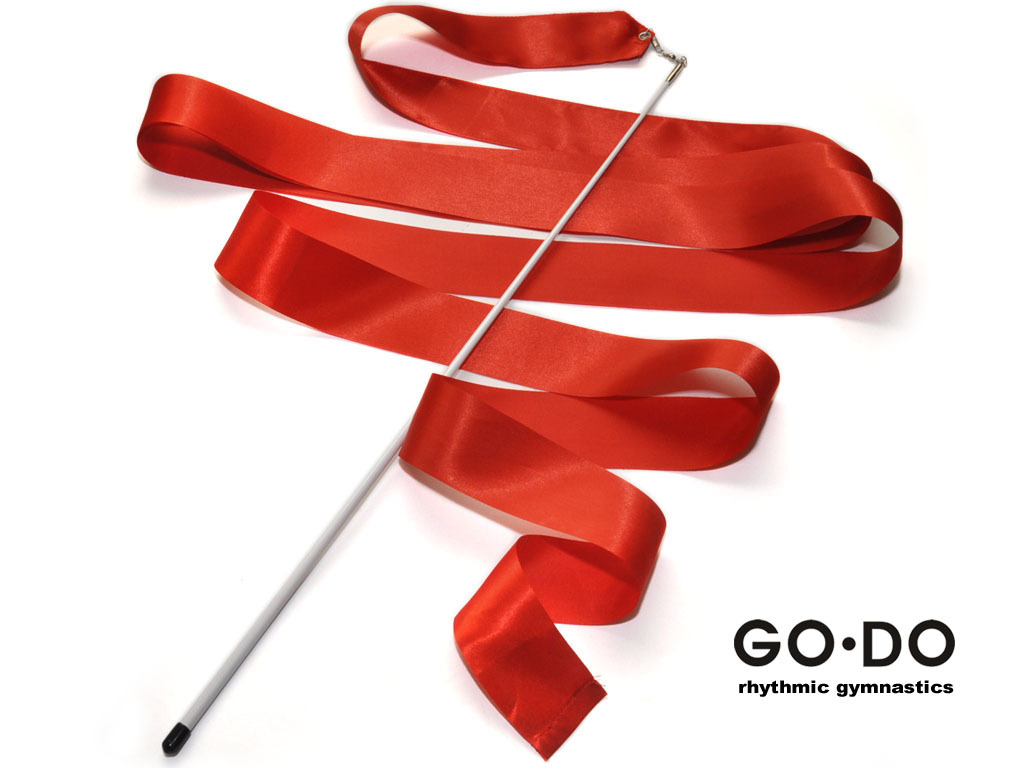 Лента для художественной гимнастики GO DO с палочкой в комплекте. Подходит начинающим и опытным гимнасткам. Палочка белого цвета, конической формы, оснащена карабином, на который крепится сама лента. Длина ленты 6 метров, цвета ленты в ассортименте.