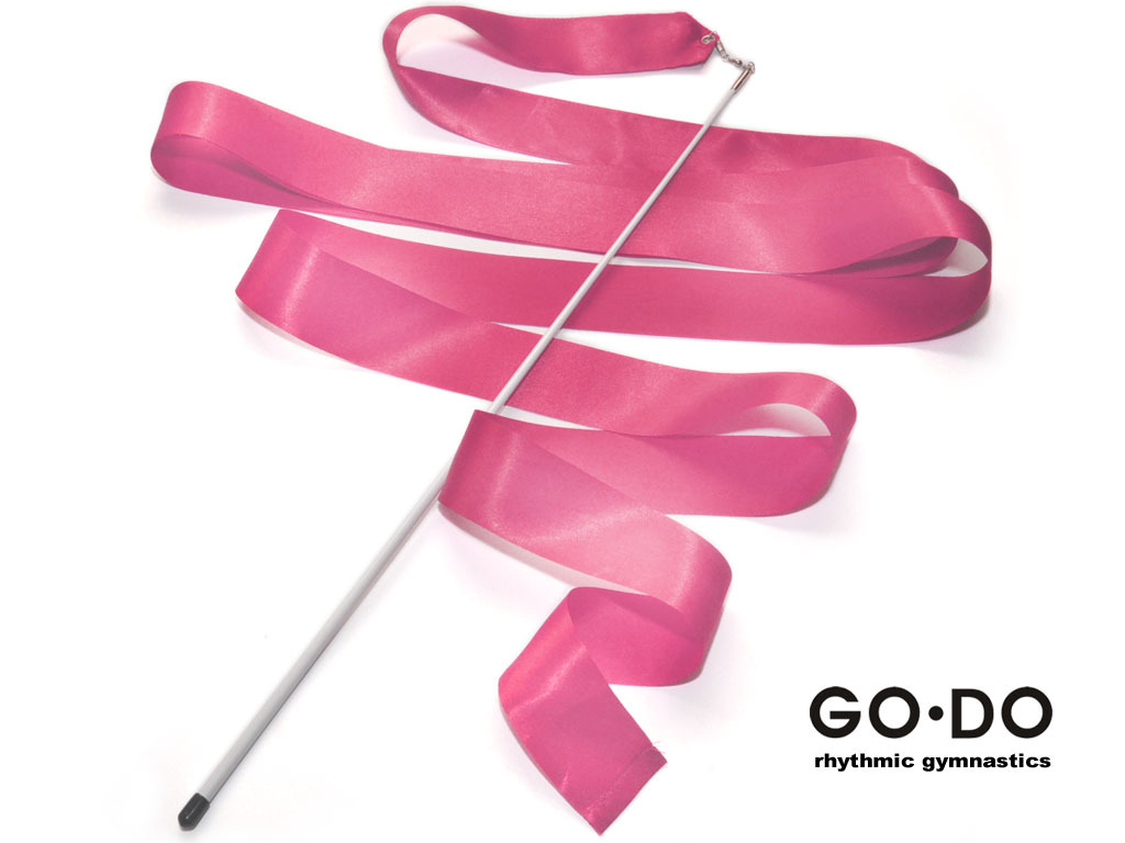 Лента для художественной гимнастики GO DO с палочкой в комплекте. Подходит начинающим и опытным гимнасткам. Палочка белого цвета, конической формы, оснащена карабином, на который крепится сама лента. Длина ленты 6 метров, цвета ленты в ассортименте.