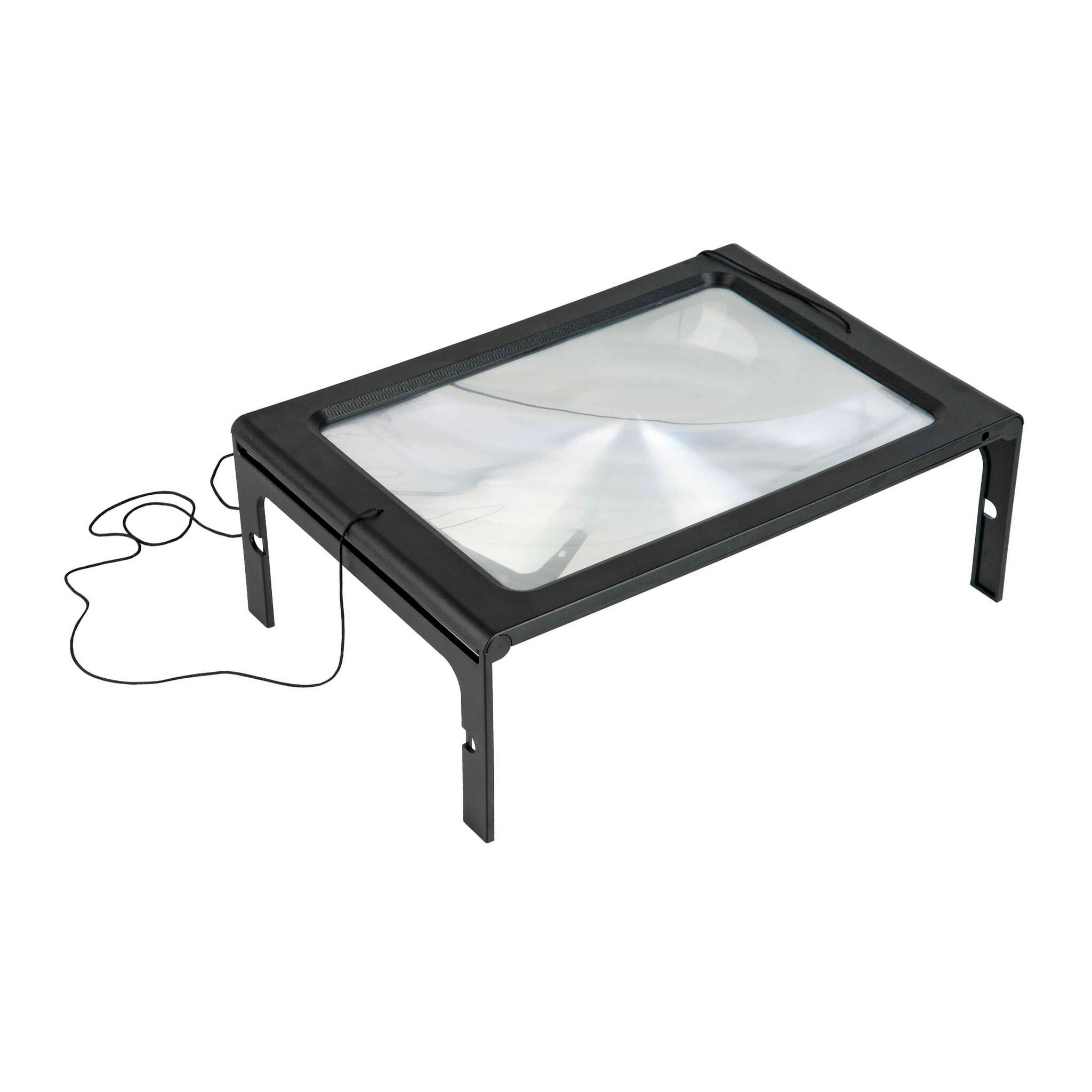 Складные ножки позволяют стационарно установить линзу-столик над документами при чтении за столом. Шейный ремешок будет удобен при чтении сидя с книгой в руках или на коленях.