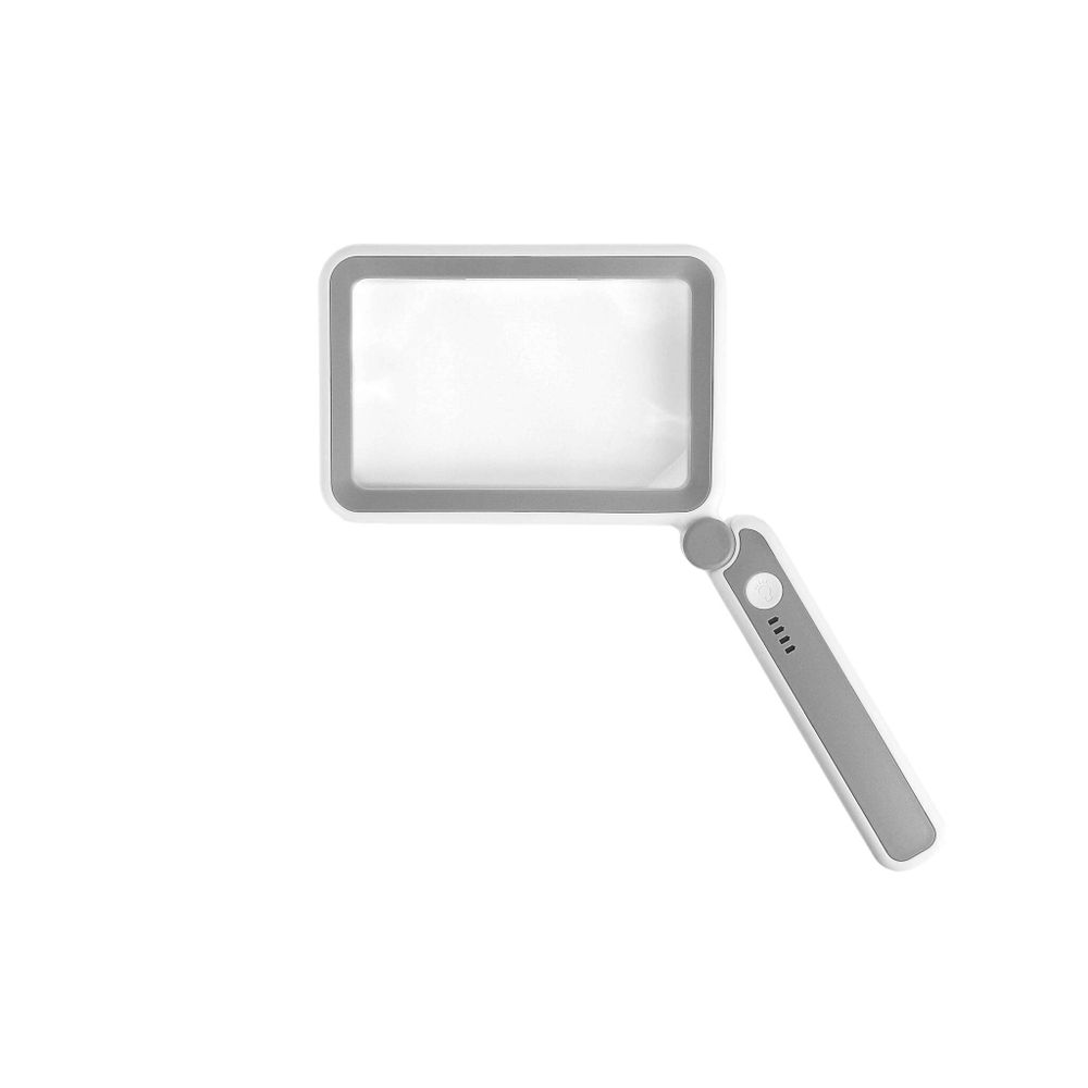 Удобная складная ручка длиной 14 см идеально подходит для комфортного удержания лупы в руке. Рукоятка имеет шесть углов фиксации, что позволяет удобно настраивать ее положение под разные задачи и предпочтения пользователя. На рукоятке расположена сенсорная кнопка включения подсветки и индикатор уровня заряда.