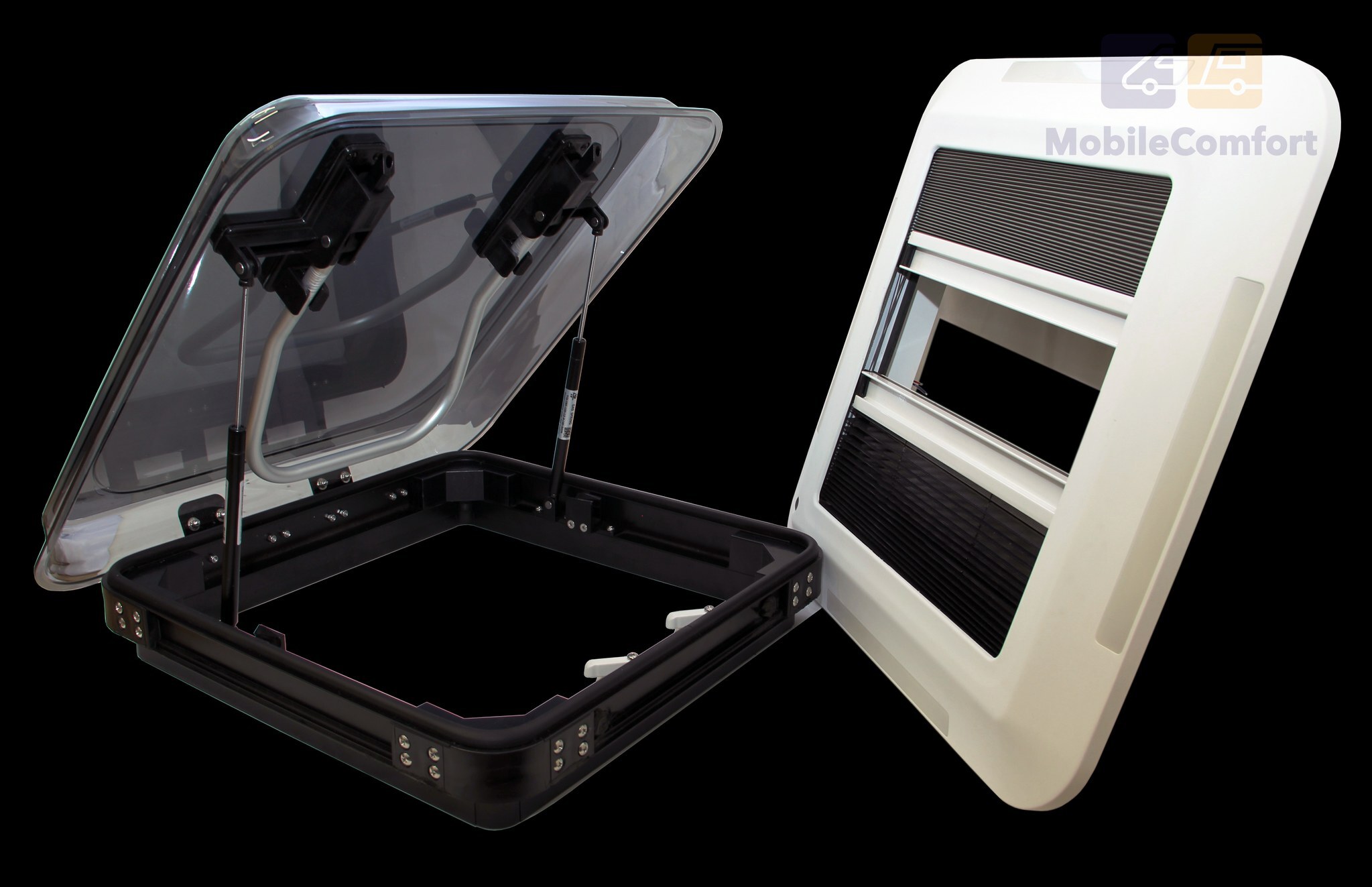 Линейка потолочных люков MobileComfort отличается высоким качеством и долговечностью. Благодаря внешнему аэродинамическому профилю верхней крышки, не требуется установка дополнительного спойлера. Запатентованное резиновое уплотнение на внутренней раме люка гарантирует водонепроницаемость. Люк изготовлен из высококачественных материалов. Алюминиевая усиленная рама, купол люка двойное акриловое стекло с тонировкой устойчивое к ультрафиолетовому излучению. Поставляется с солнцезащитной плиссированной шторкой и москитной сеткой. Благодаря таким бесспорным преимуществам, как простота в уходе, наличие затемняющей шторы и москитной сетки, этот люк обеспечивает комфорт и удобство в дороге. Поставляется двух типоразмеров 400х400 и 700х500 мм