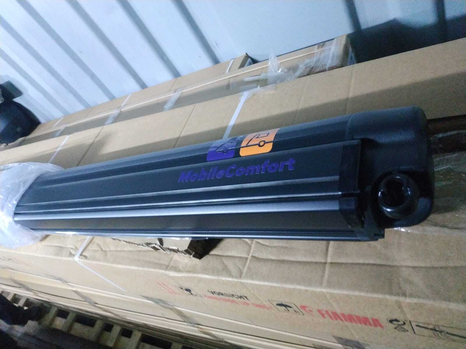 Маркиза представлена в черном корпусе с темно-серым полотном, имеет длину 3.5 метра и вылет 2.4 м